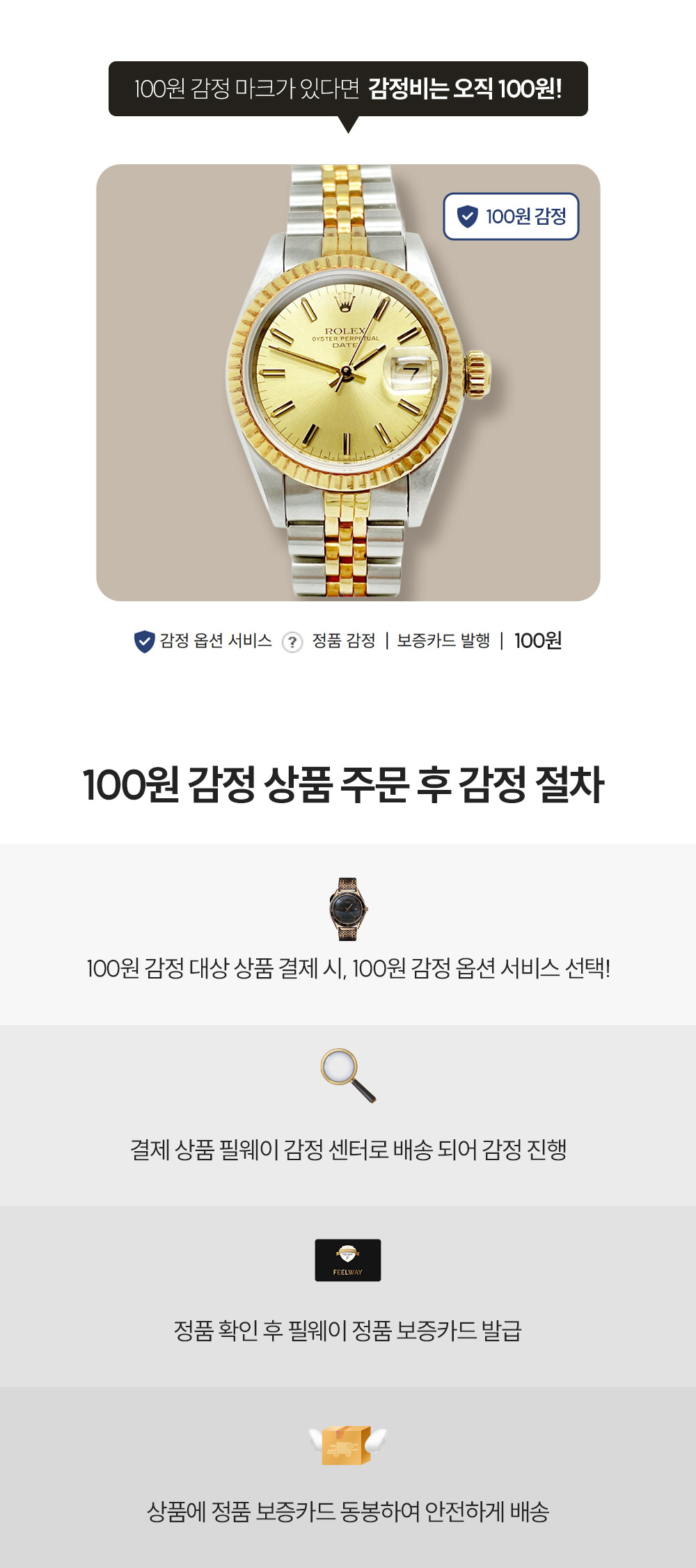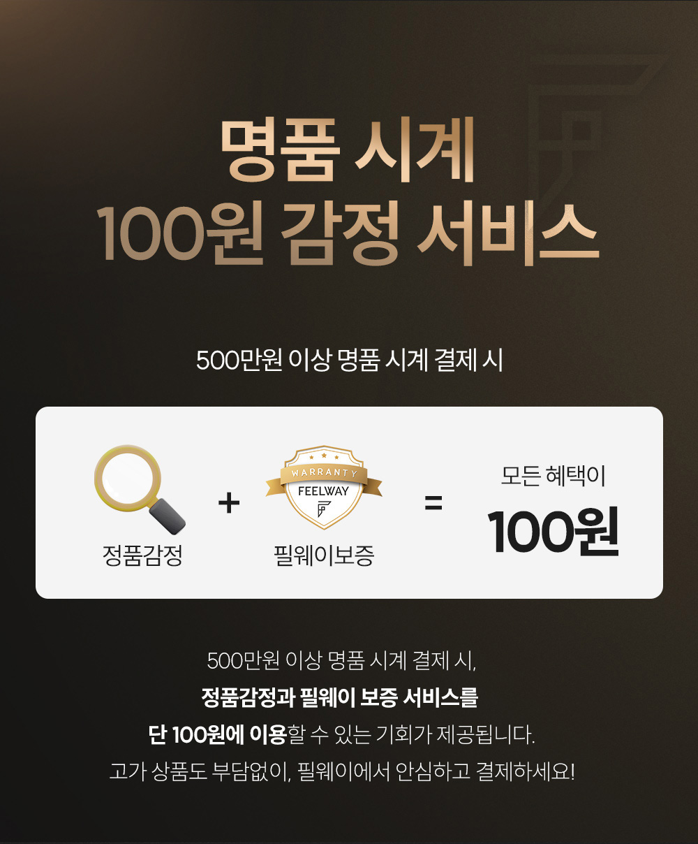 정품감정 + 필웨이보증 = 모든 혜택이 100원