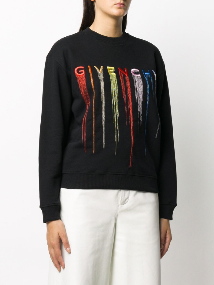 They say sighting a rainbow is a promise of good things to come. And the multicoloured logo embroidered on this jumper looks a lot like a rainbow to us. The first good thing you'll experience with this Givenchy piece? The postman at our doorstep. *sigh* Highlights black cotton knitted construction ribbed-knit edge drop shoulder crew neck long sleeves multicolour logo embroidered to the front Composition Cotton 100% Made in Italy SIZE: S,M,L ¾÷üÄÚµå: BR01