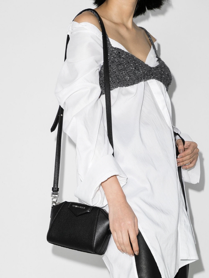 Sometimes you need to spice up your life a bit. How about letting the supple leather construction on this Givenchy bag do the talking? Fun times ahead. Highlights black leather adjustable detachable shoulder strap logo plaque top zip fastening main compartment silver-tone hardware Made in Italy Composition Outer: Leather 100% Depth 5 cm Height 12 cm Strap 62 cm Width 20 cm ¾÷üÄÚµå: BR01