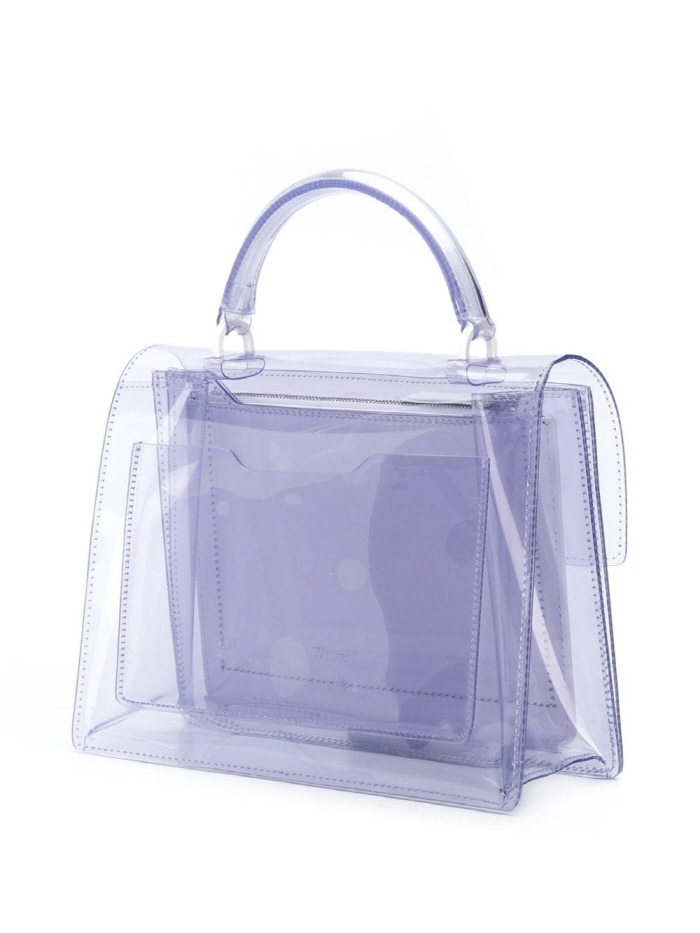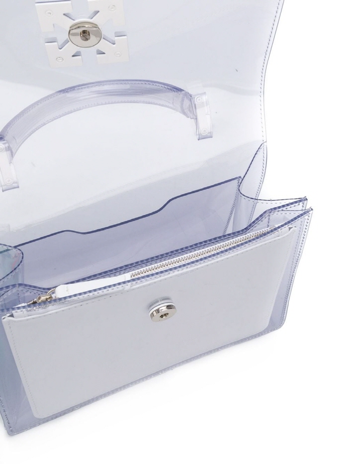 Frontal logo Single top handle Magnetic closure Flap closure With removable zip pouch Trasparent effect Made in italy 100% pvc White Fall Winter 2020/21 Size & Fit 19x25x9 cm ¾÷üÄÚµå: BR01