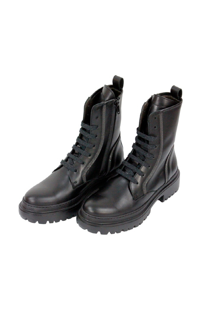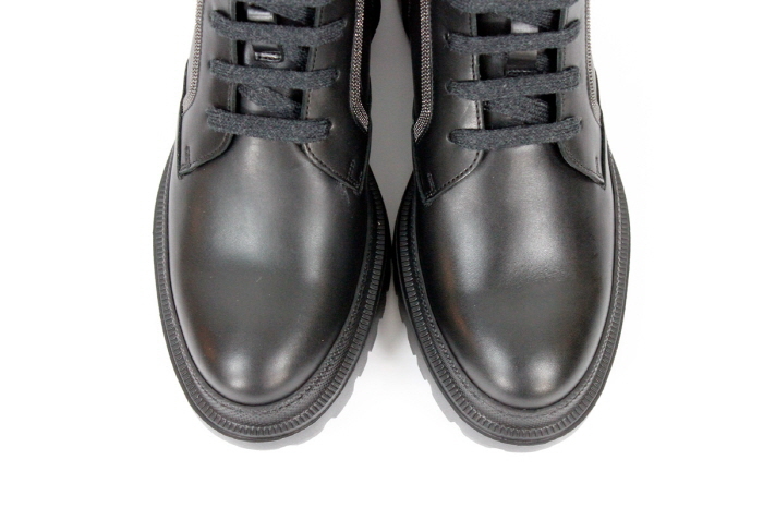 Logo on side Zip closure Lace-up closure Leather upper Leather sole Round toe Made in italy 100% calf leather/ rubber sole Black Fall Winter 2020/21 Size & Fit eu size chart SIZE: 36,36.5,37,37.5,38,38.5,40 ¾÷üÄÚµå: BR01 |
