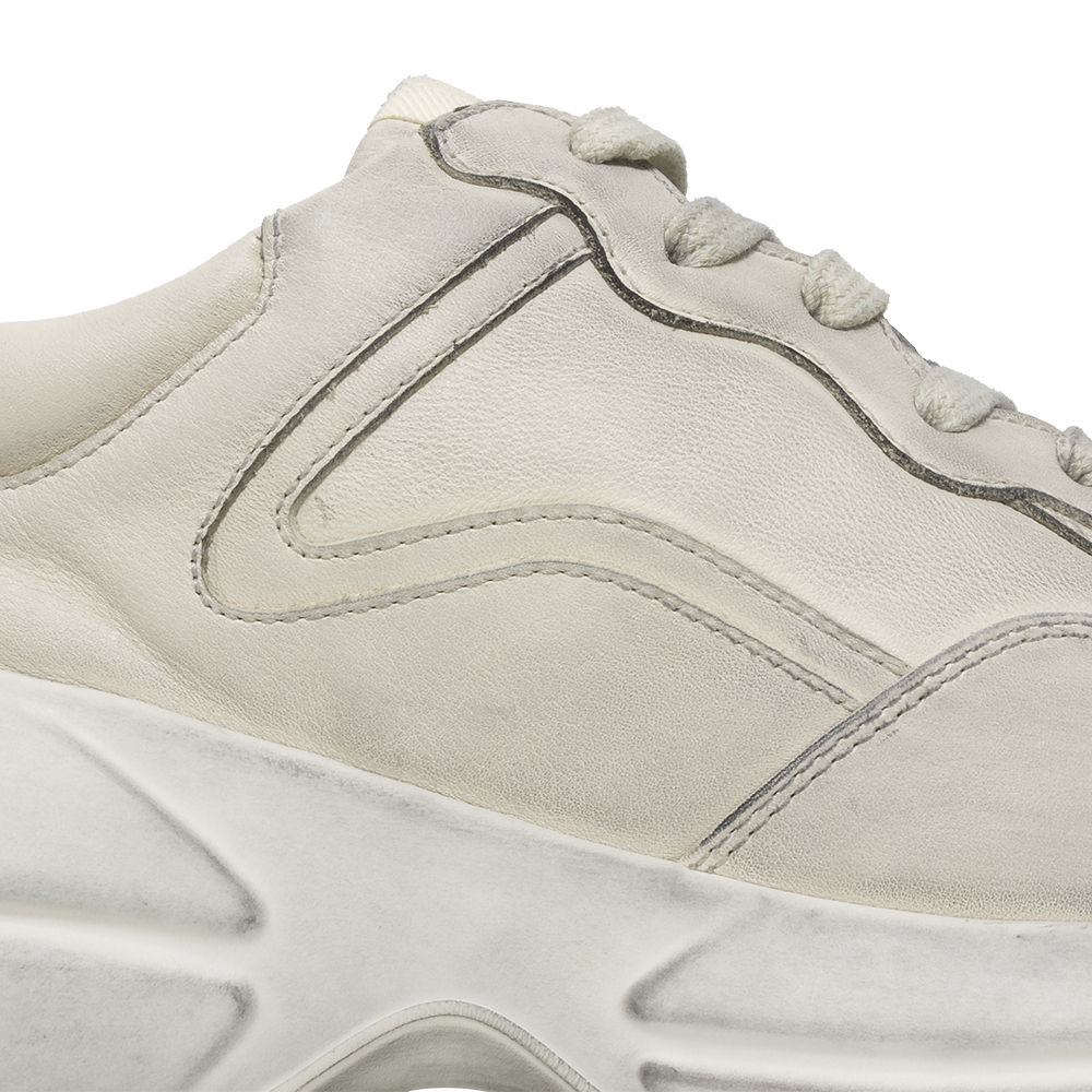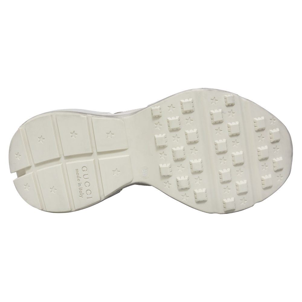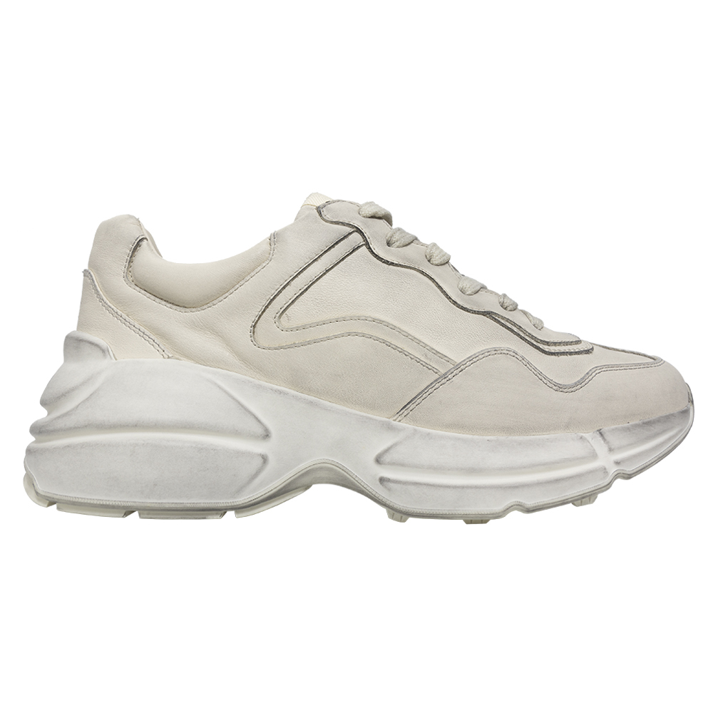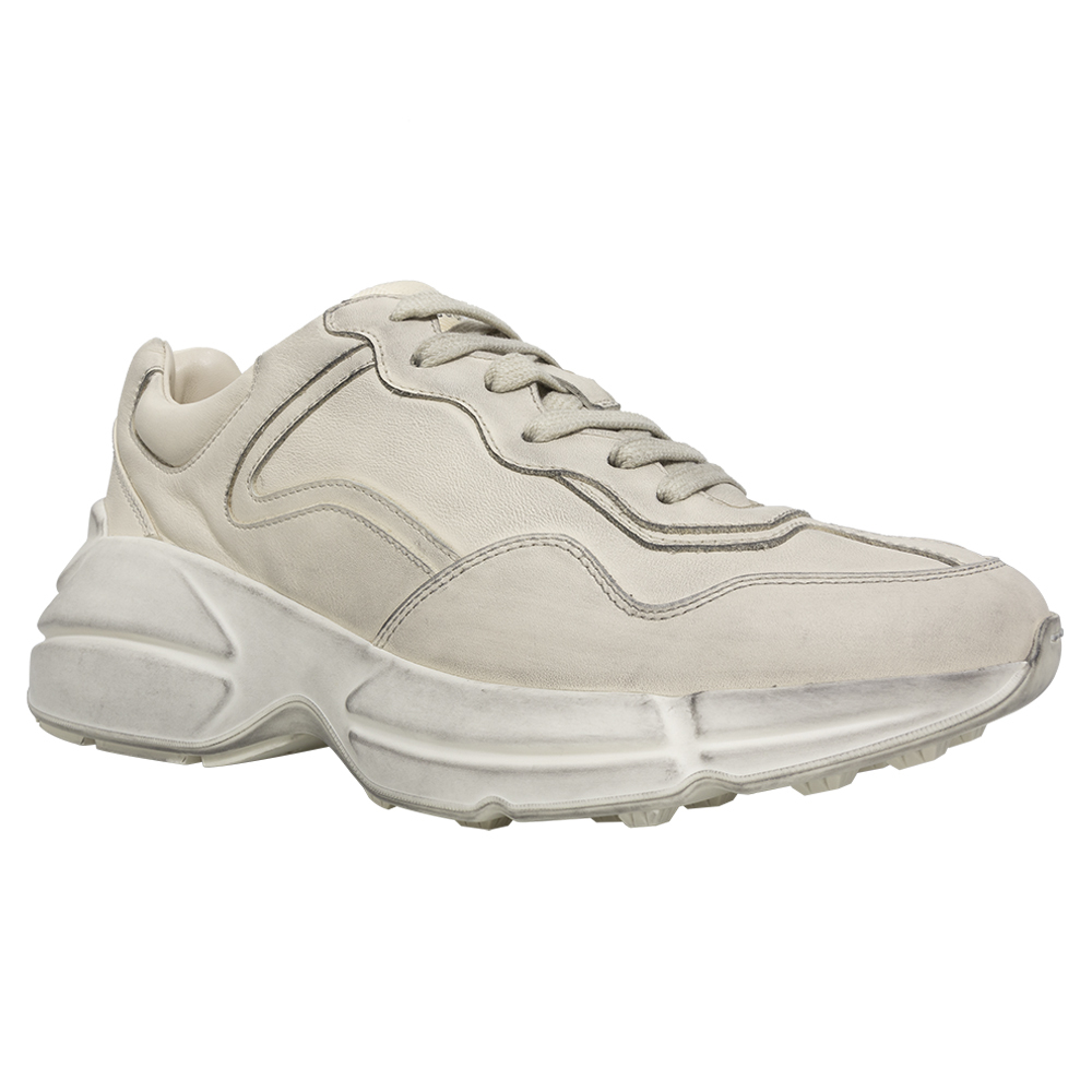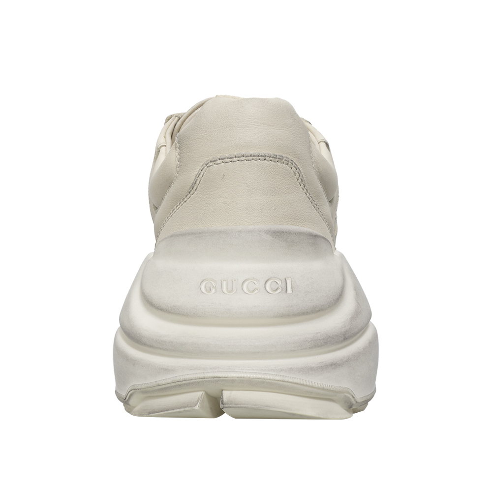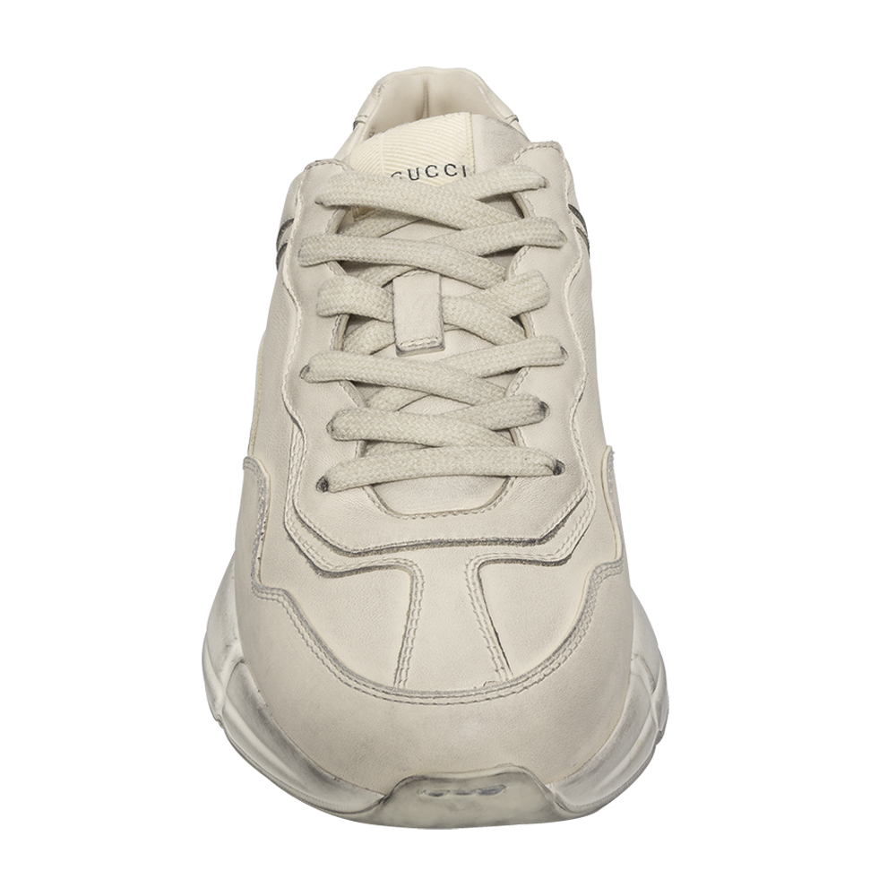 Sneakers with sole. These light beige calf leather Rhyton distressed-effect sneakers from Gucci will take you far and wide. Literally.