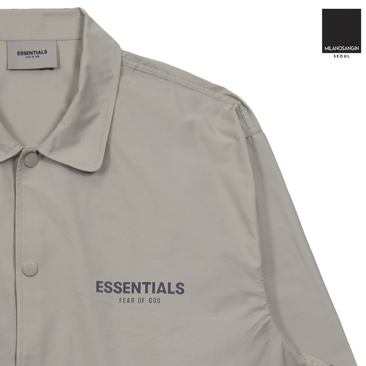 The perfect addition to your transitional looks, this neutral coach jacket comes from Fear of God ESSENTIALS¡¯ latest drop. It¡¯s branded with charcoal grey prints at the chest and back, and competed with a pair of angled welt pockets.