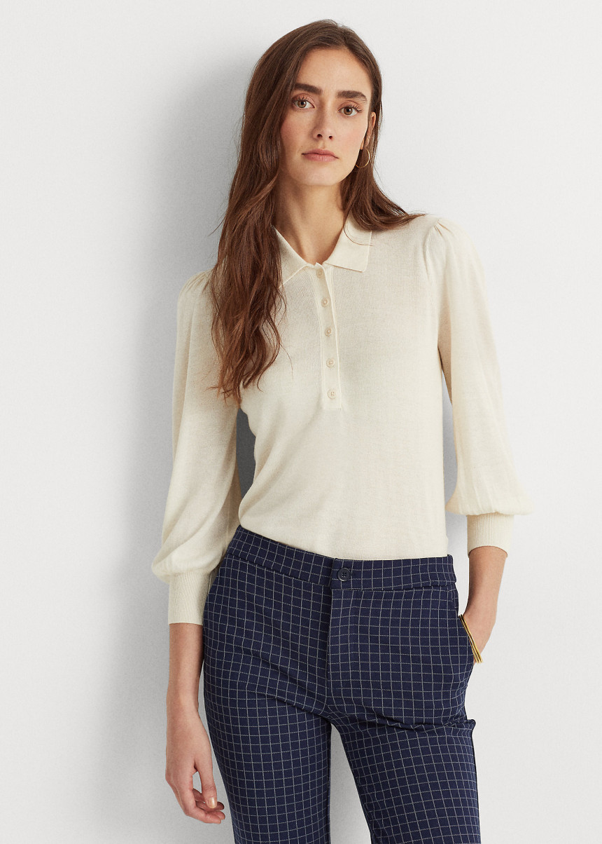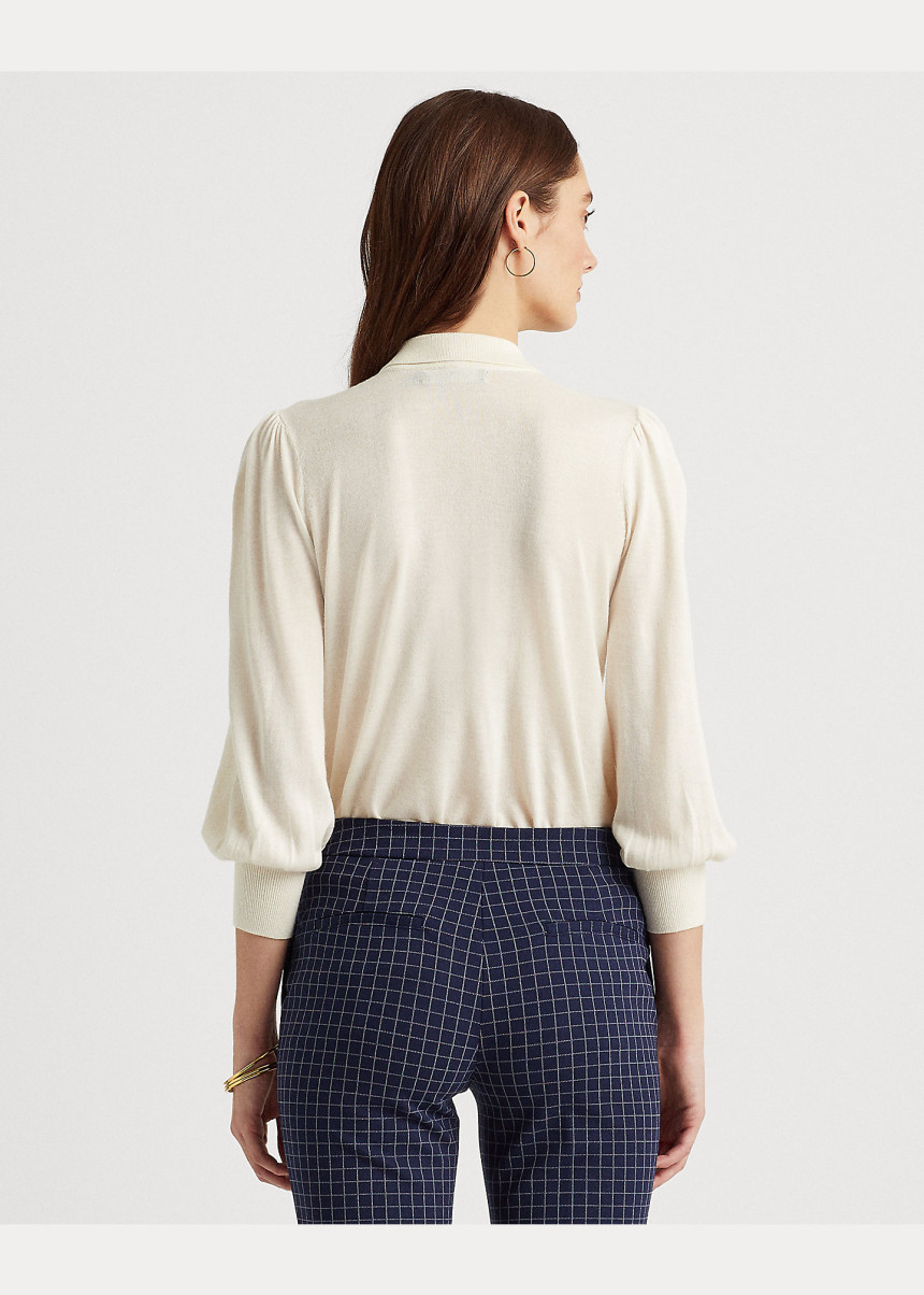 Silk-Blend Puff-Sleeve Sweater