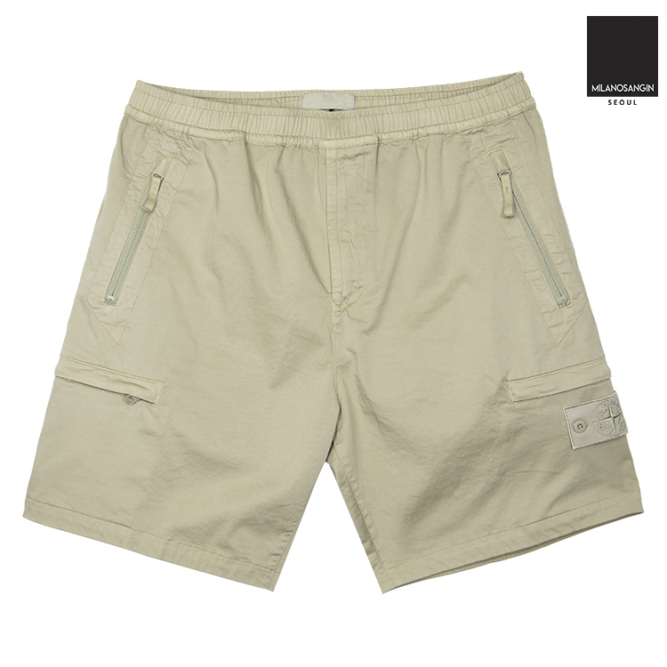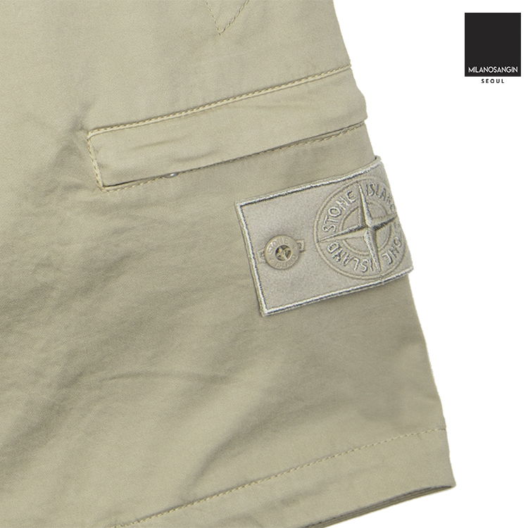 The Stone Island Badges are also designed in a special single-color variant to match the garment. Cargo Bermuda shorts made of cotton sateen and wool stretch.