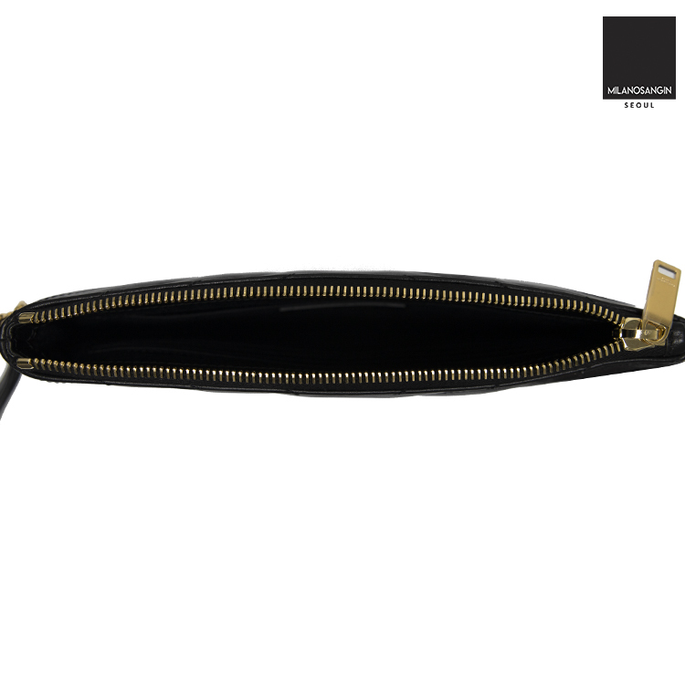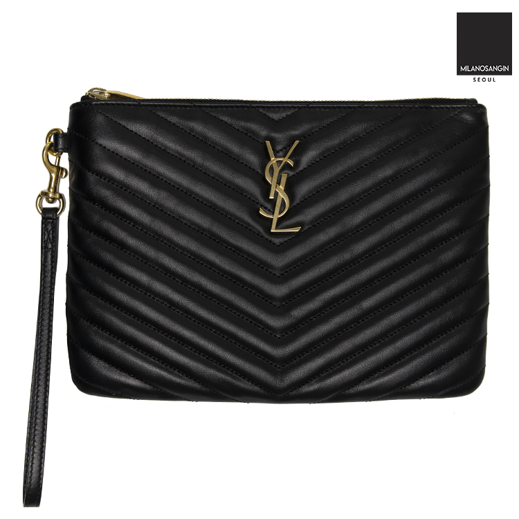 this black quilted purse from Saint Laurent features a detachable wrist strap, a top zip fastening, a gold-tone YSL logo and an internal slip pocket with brand patch.