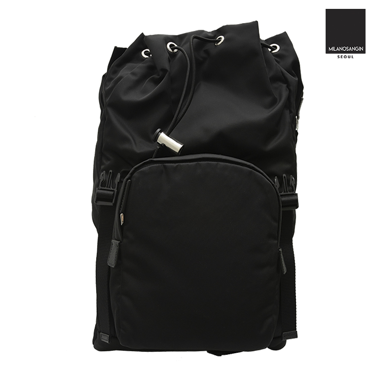 Prada backpack in nylon and saffiano. Two adjustable nylon straps.