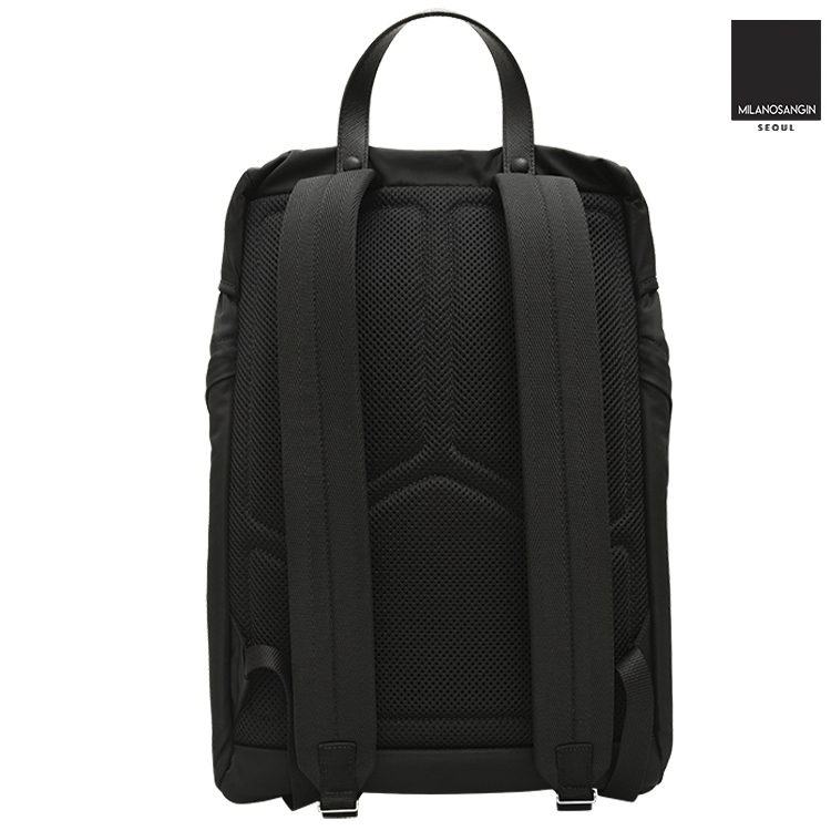 Metallic details in silver finish. Four external pockets with zip closure. Padded mesh back.