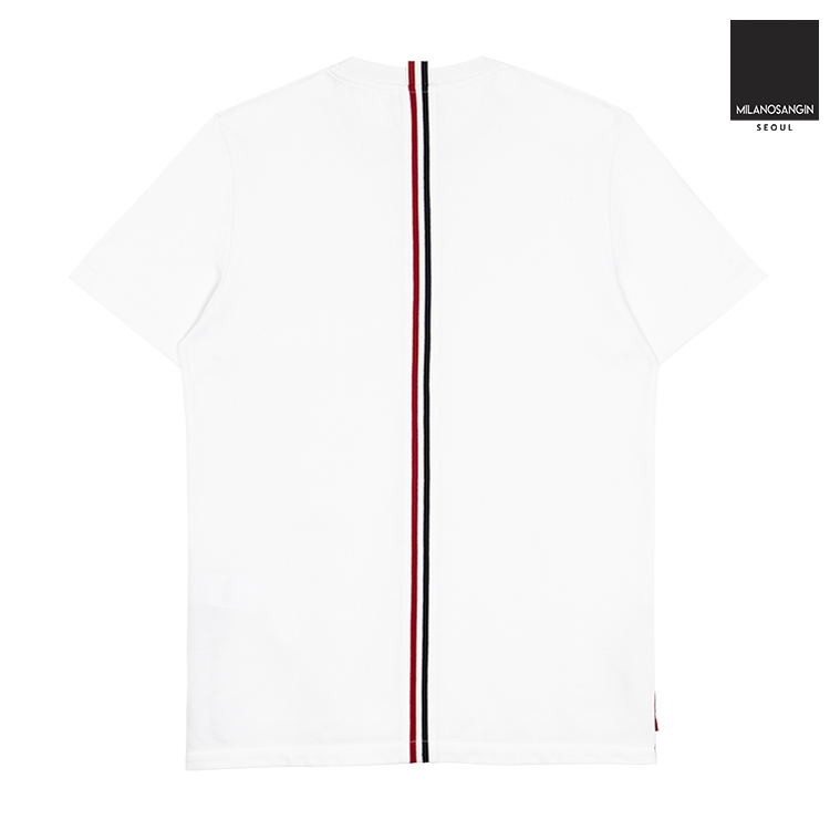 Cotton t-shirt featuring striped band detail at rear.