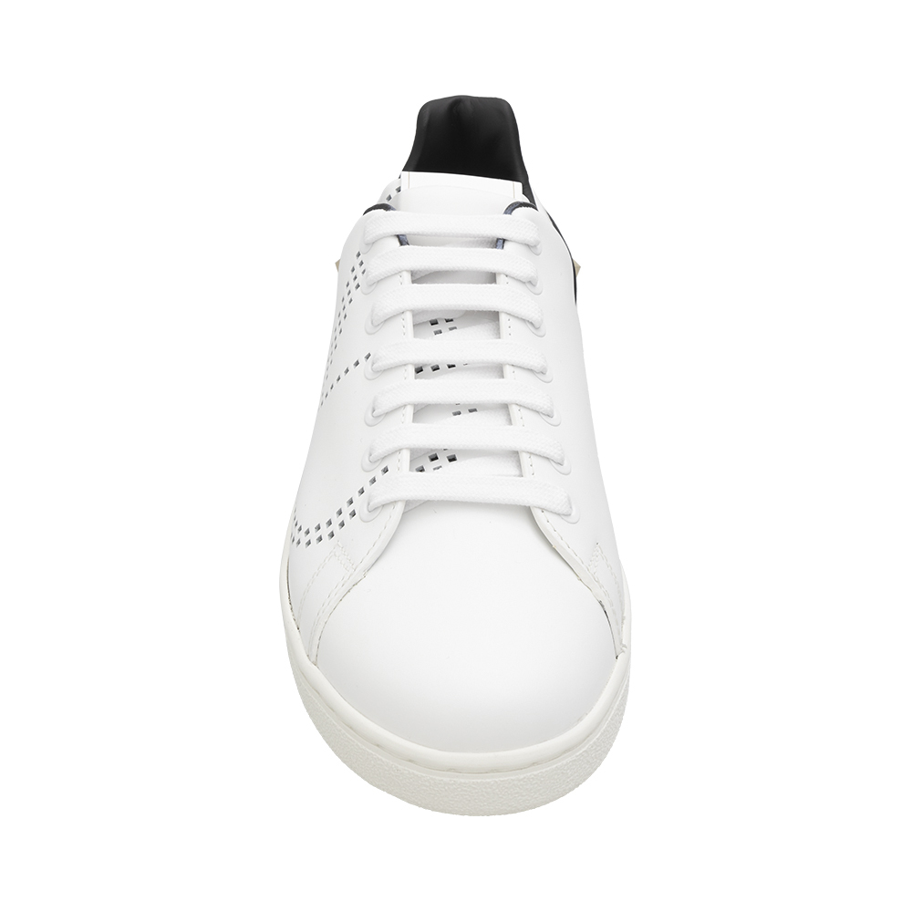 Featuring a round toe, a smooth surface with a matte finish, a lace-up front fastening, a logo patch at the tongue, decorative perforations, a branded insole, gold and branded heel counter.