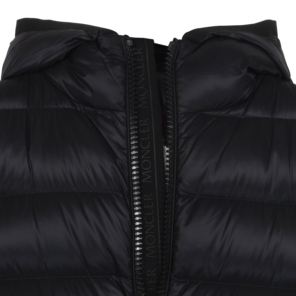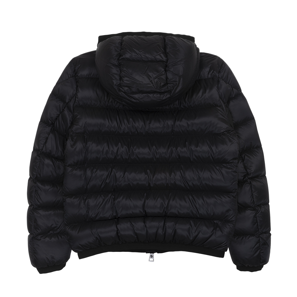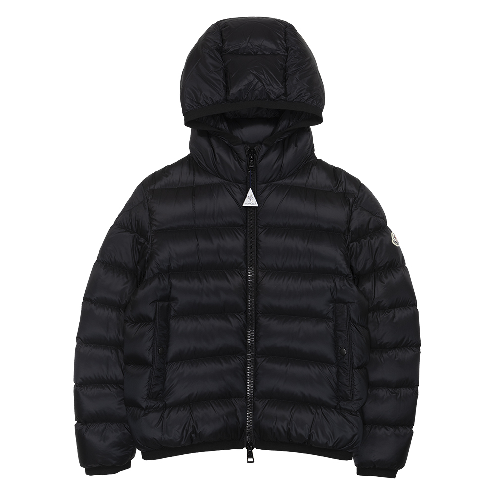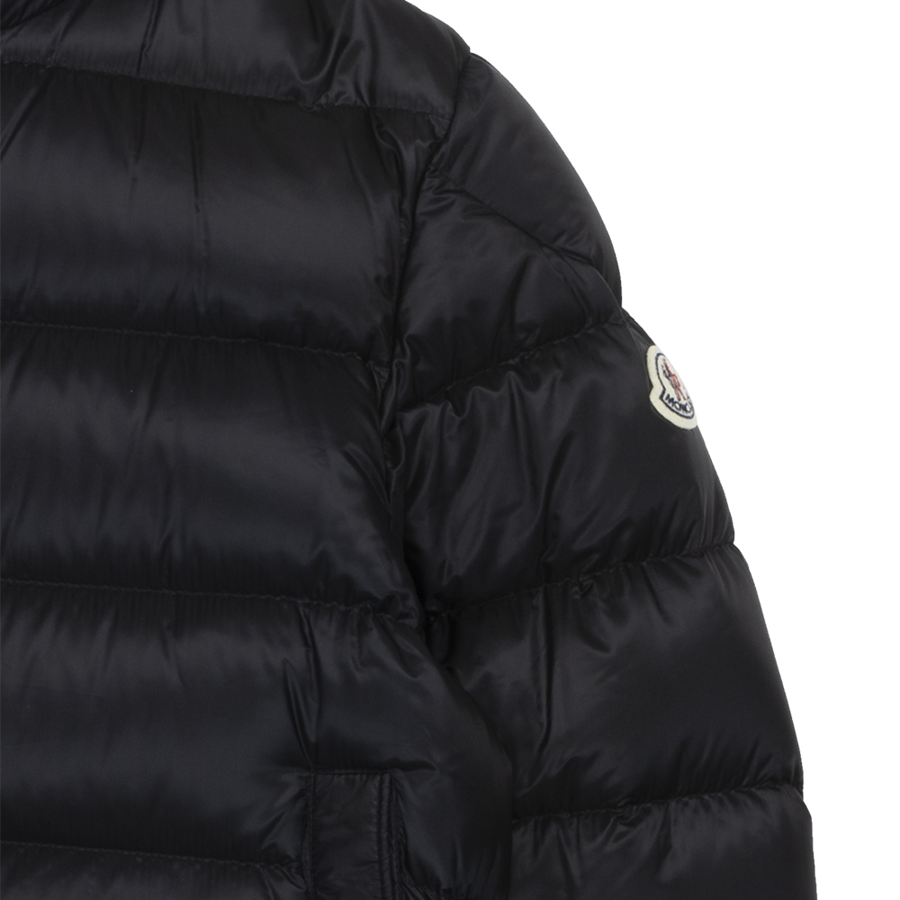 Moncler Myosotis Jacket in Black. Utilising an all-black colourway with a hint of tradition, this stylish Myosotis Jacket from Moncler sports the brands timeless felt patch to the arm, as well as utilising a two-way zip closure and buttoned pockets to ensure comfort and functionality. Filled with premium down, this jacket is designed to maintain warmth, even through the coldest of days.