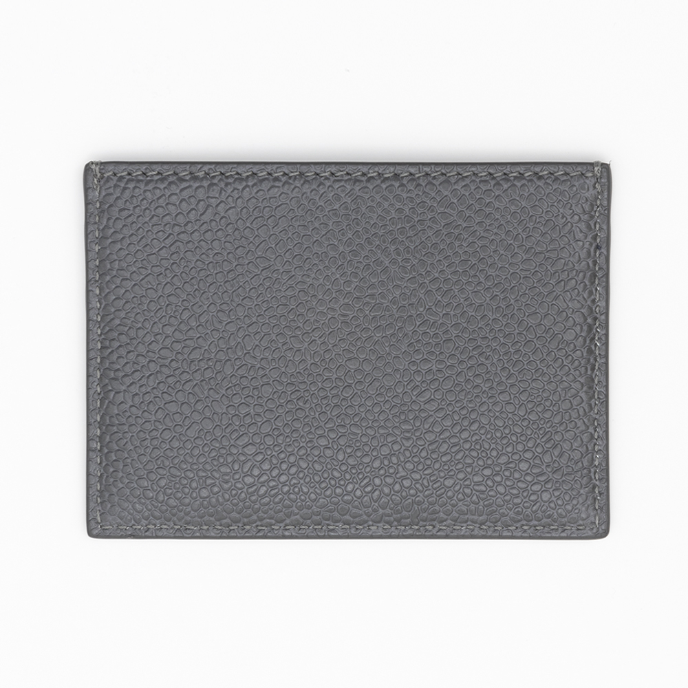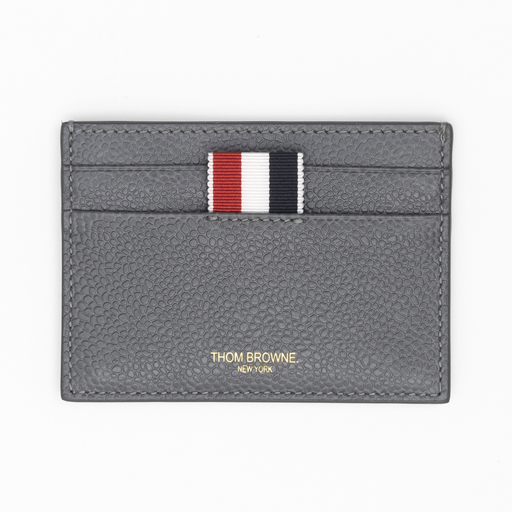 Pebbled leather card holder- Front contrasting color printed logo- Front gros grain iconic striped tongue- One compartment with gros grain striped lining- Two front card holder pockets