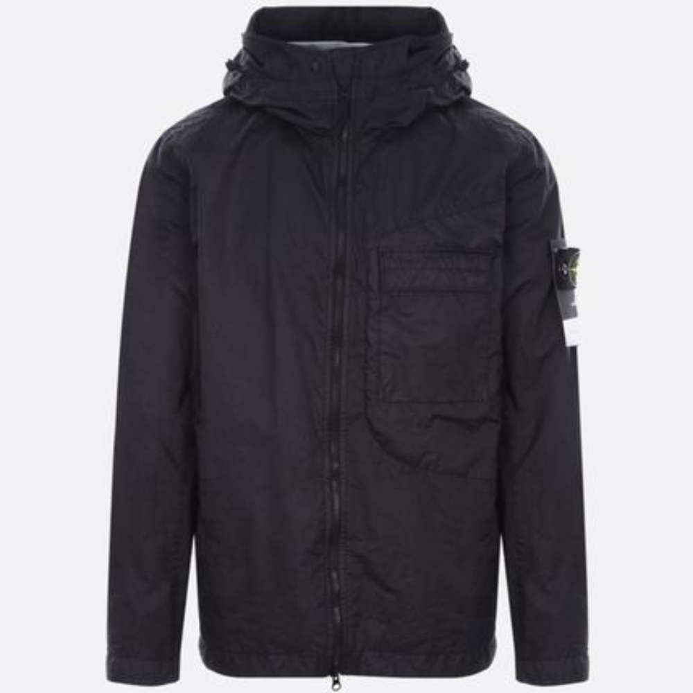 STONE ISLAND BLACK HOODED JACKET.