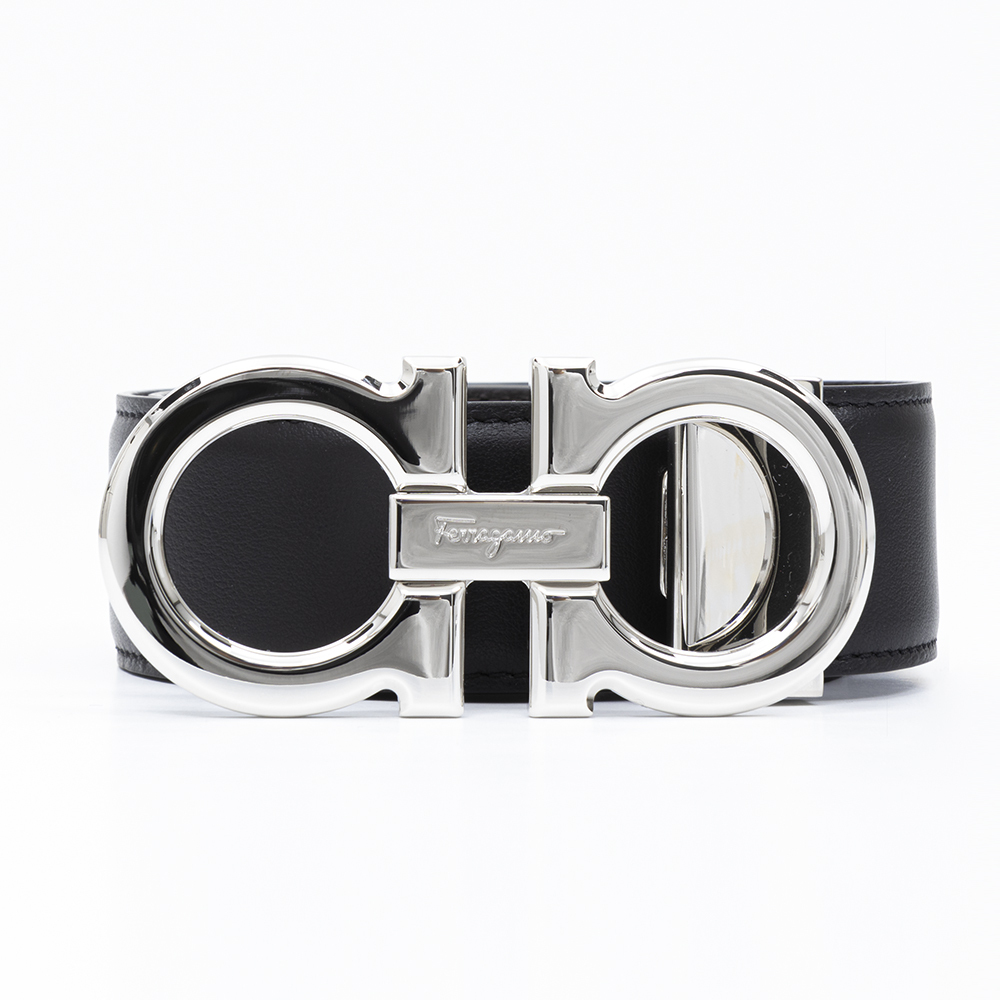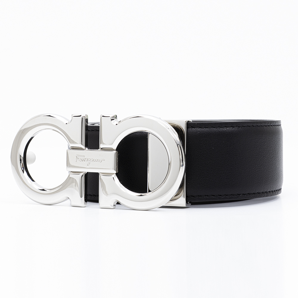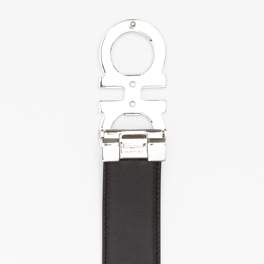 This Gancini belt offers a modern update on the timeless wardrobe staple. Crafted from natural grained calfskin leather with a semi-matt texture, the reversible design ensures it is as versatile as it is refined. Notice the metal buckle in a polished ruthenium-tone finish that lends it an effortlessly chic touch. Can be cut to size to ensure the perfect fit.