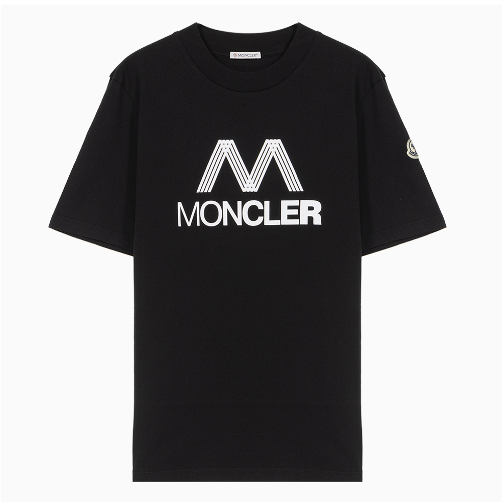 Cotton T-Shirt by Moncler, iconic brand monogram printed in contrast on the front,