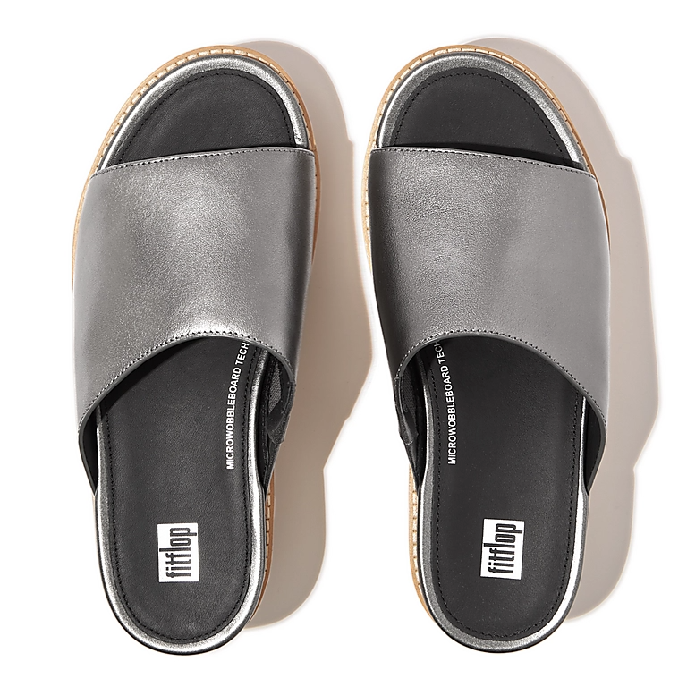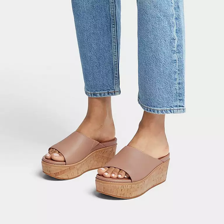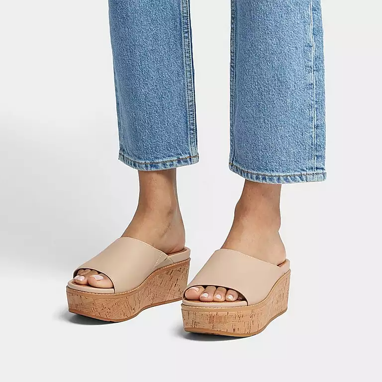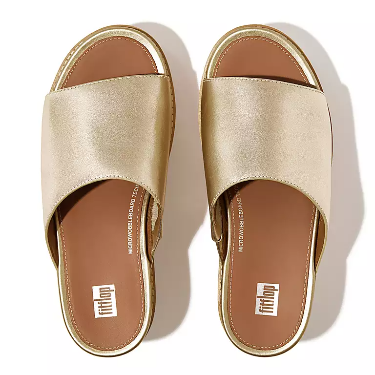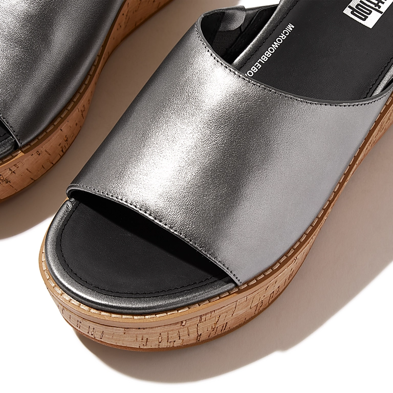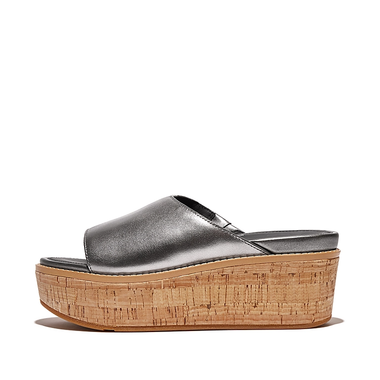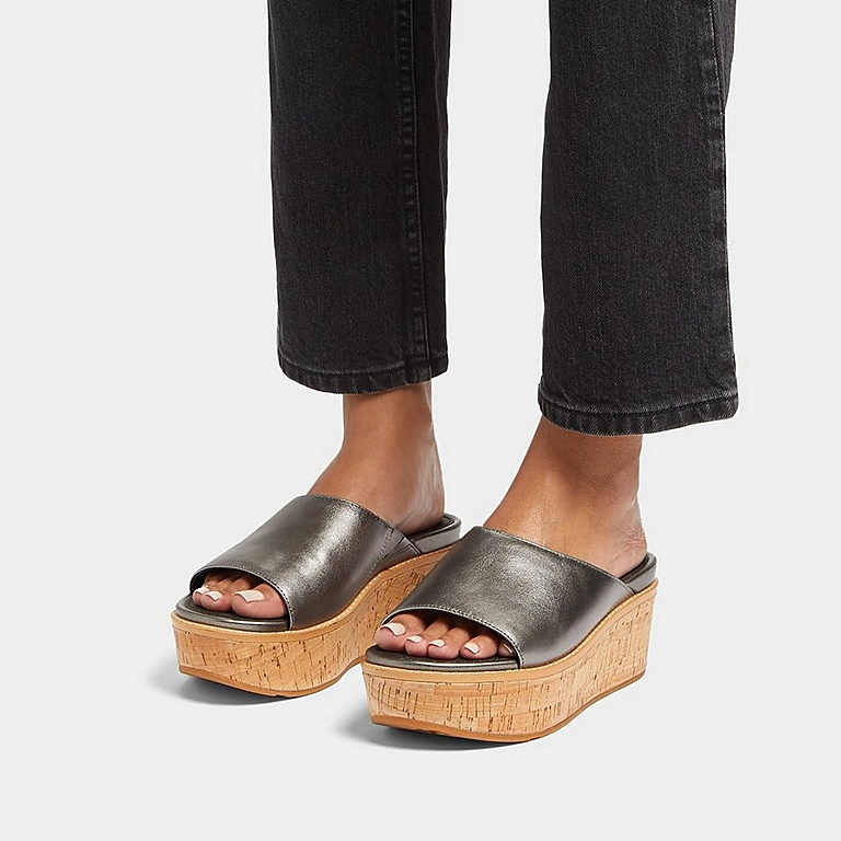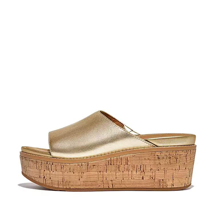 Cork-Wrap Metallic-Leather Wedge Slides