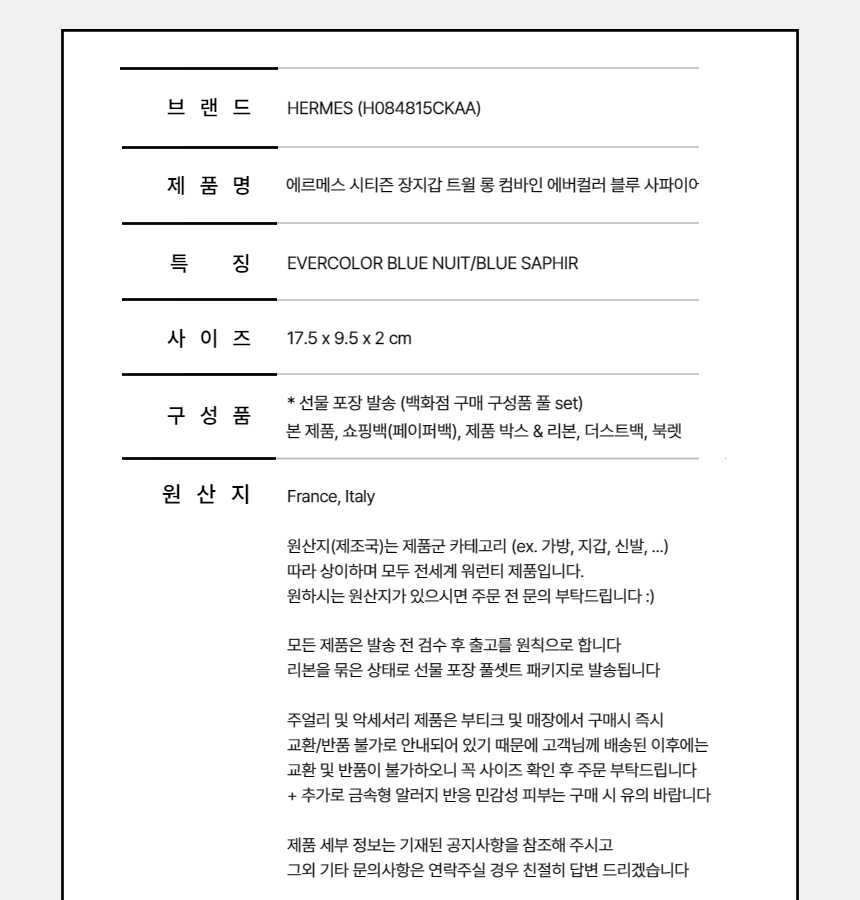 ¿¡¸£¸Þ½º ½ÃƼÁð ÀåÁö°© Æ®Àª ·Õ ÄĹÙÀÎ ¿¡¹öÄ÷¯ ºí·ç ´µ »çÆÄÀ̾î H084815CKAA