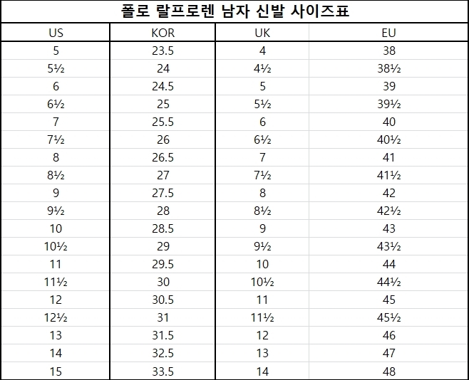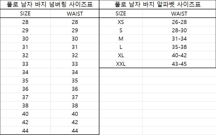 ³²ÀÚ ÀÇ·ù »çÀÌÁîÇ¥