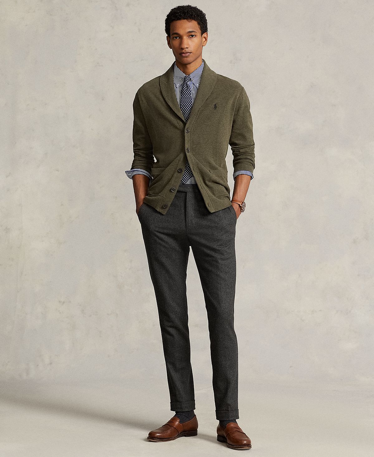 Approx. model height is 6"1" and he is currently wearing a size medium
