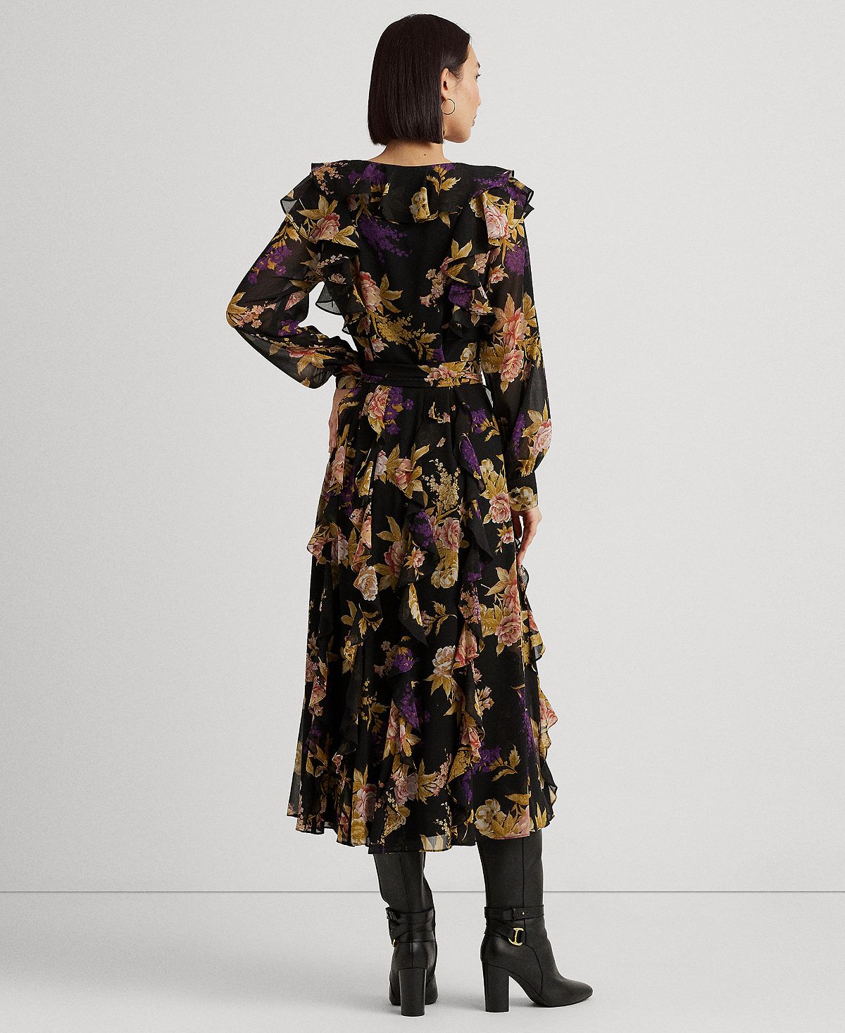 Cascading ruffles at the skirt