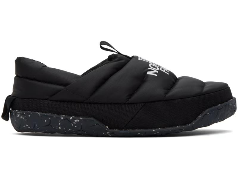 RDS-certified down-filled quilted recycled PET ripstop slip-on loafers in black.