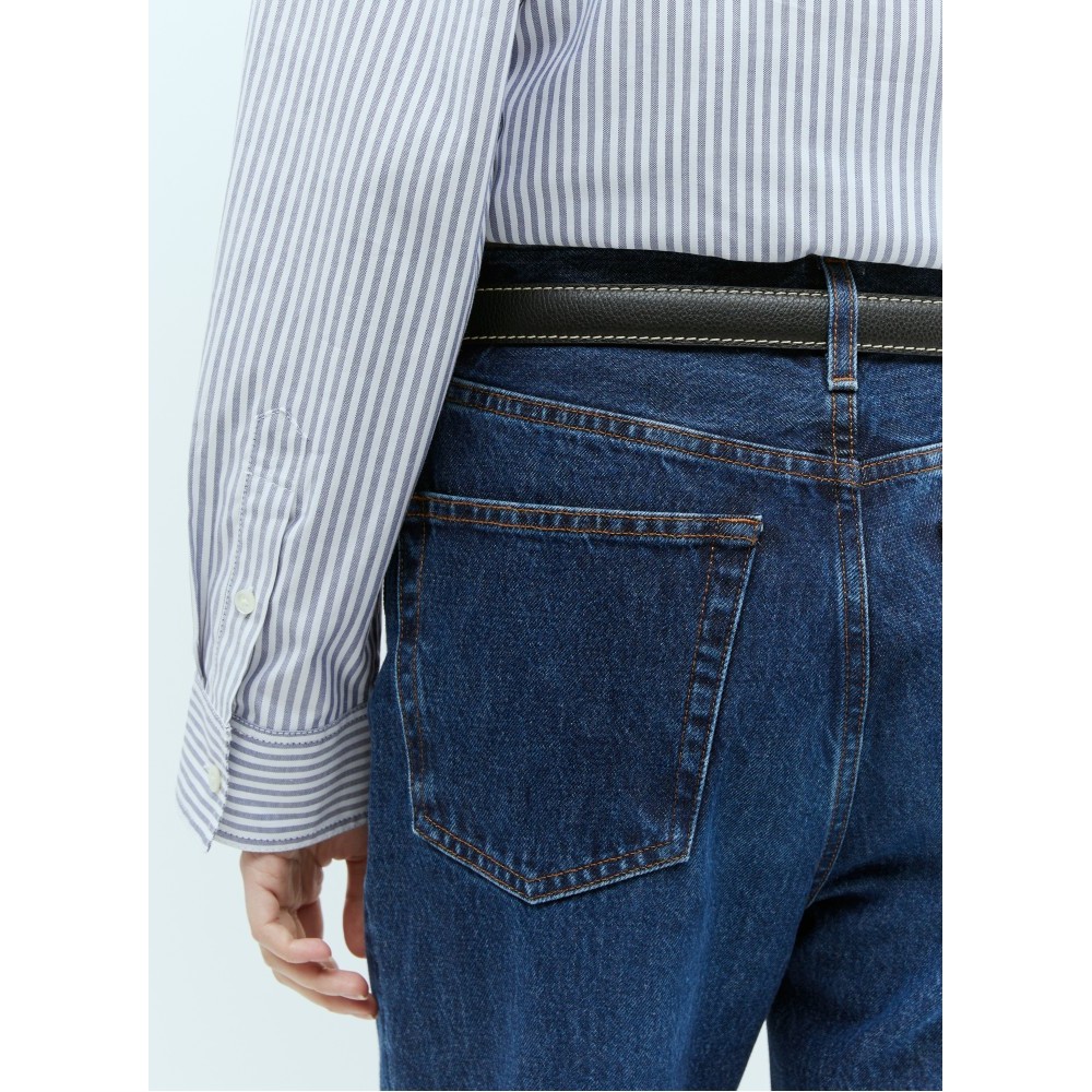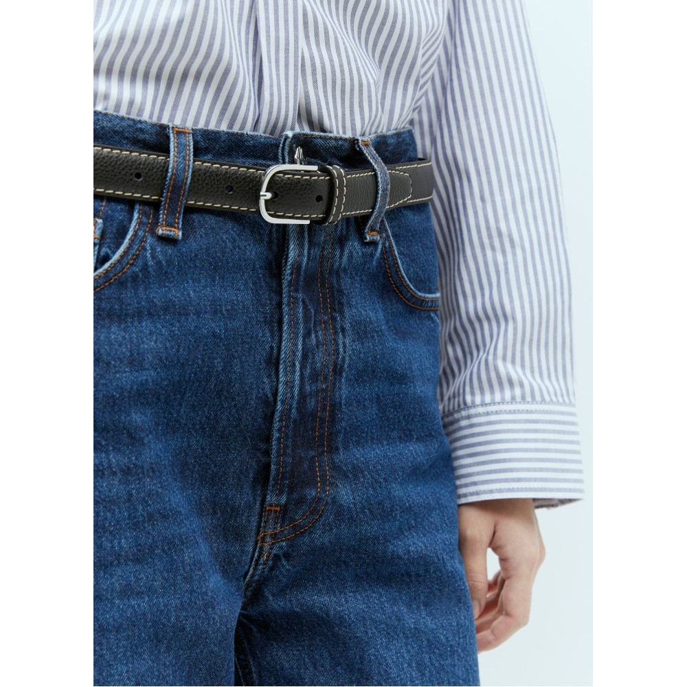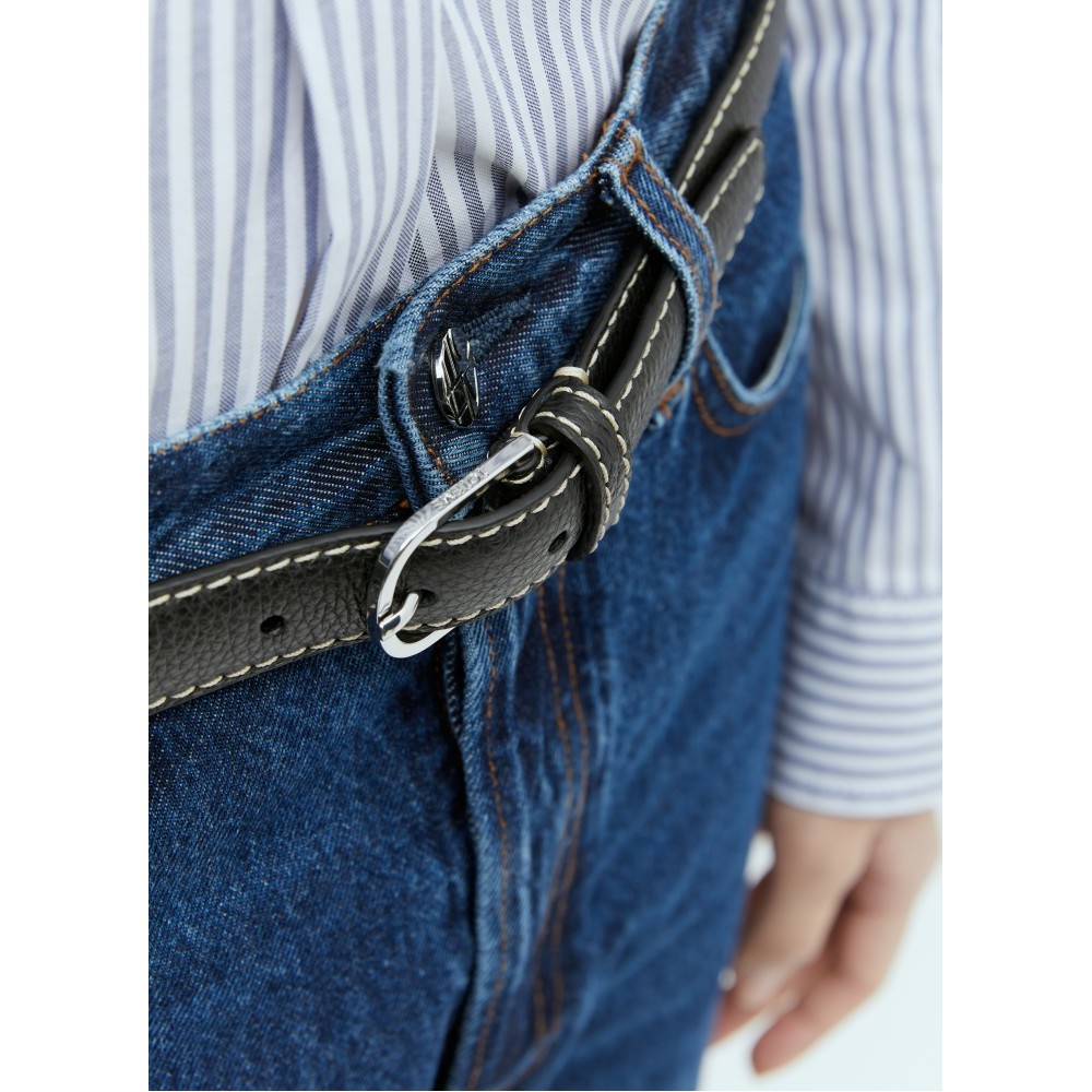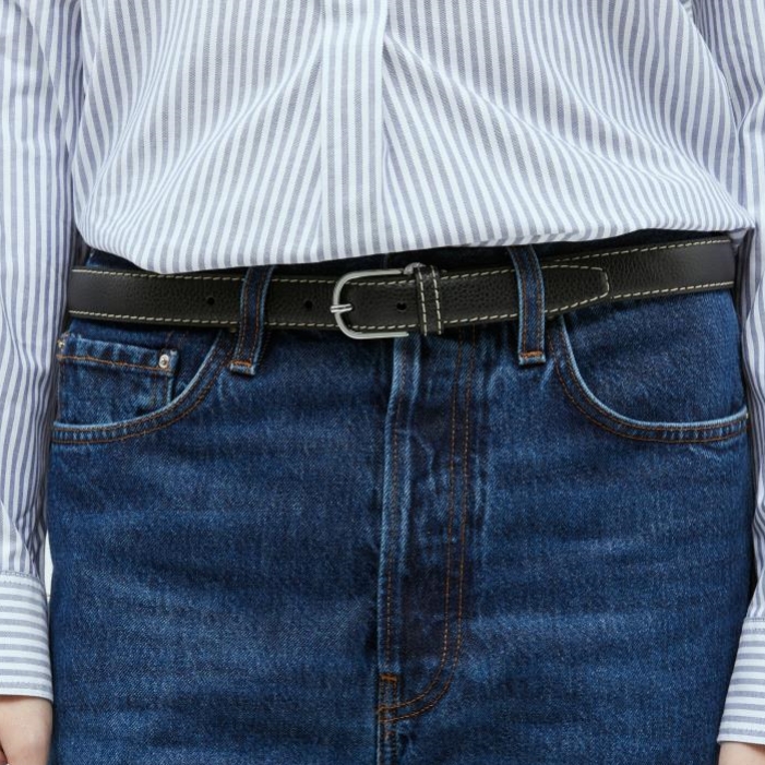 Slim leather belt with contrast topstitching.