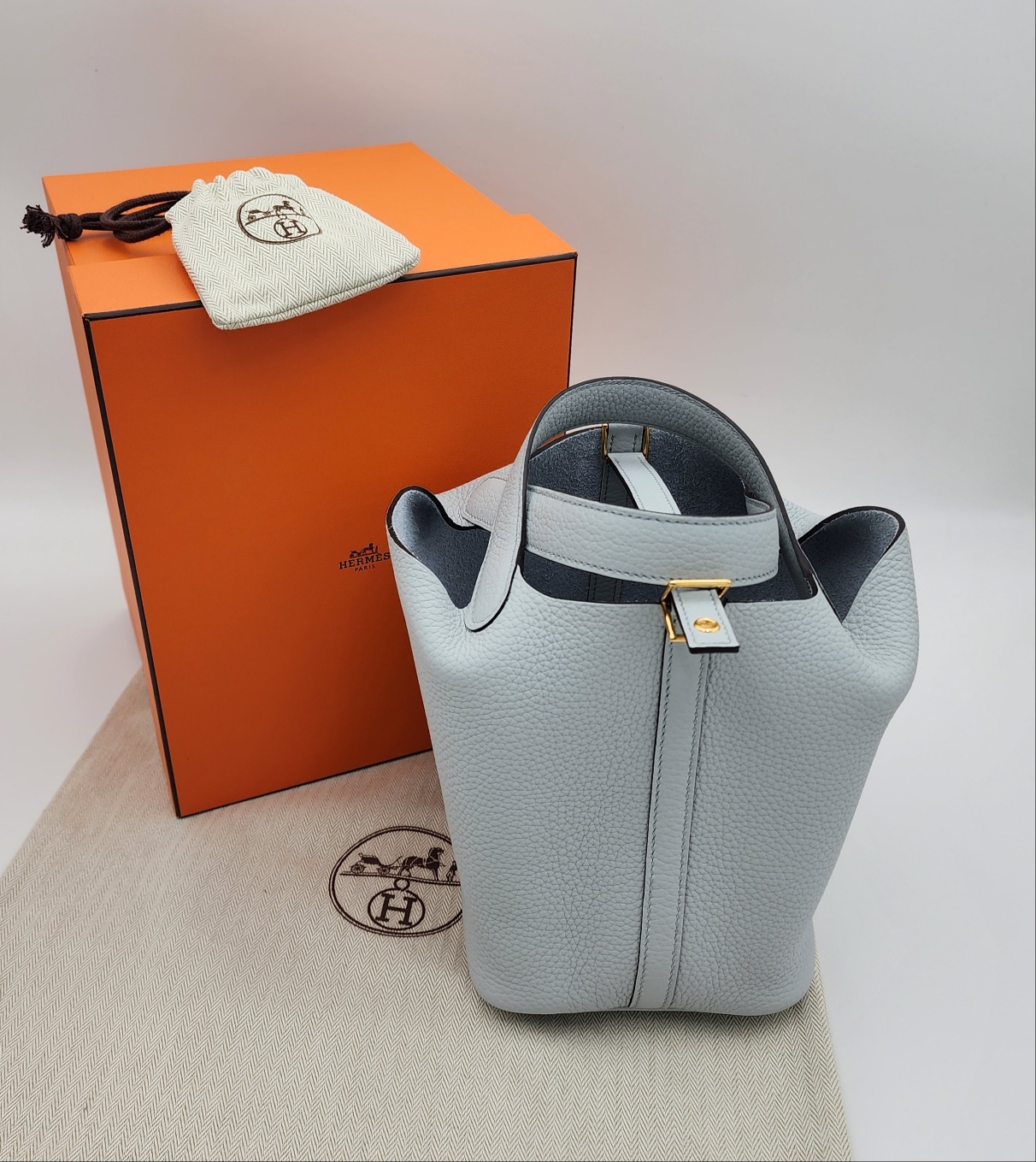 "Hermes Picotin Lock 18 Bag Gold & Palladium Blue Pale