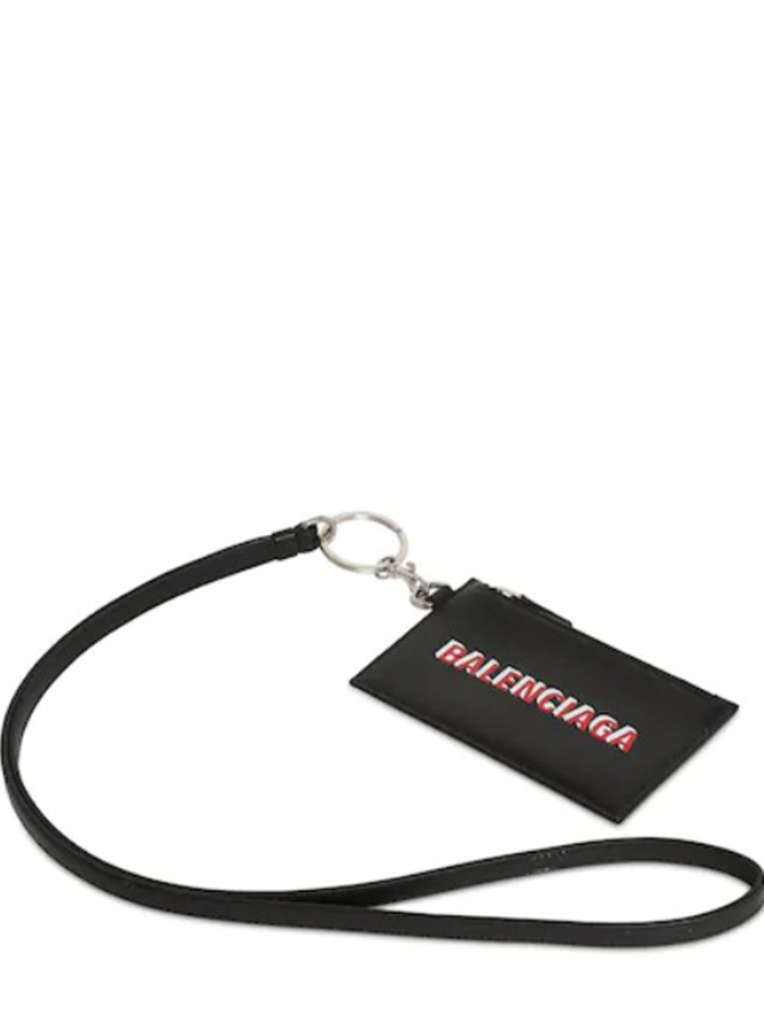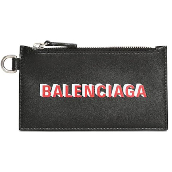 LOGO PRINT LEATHER ZIP CARD HOLDER