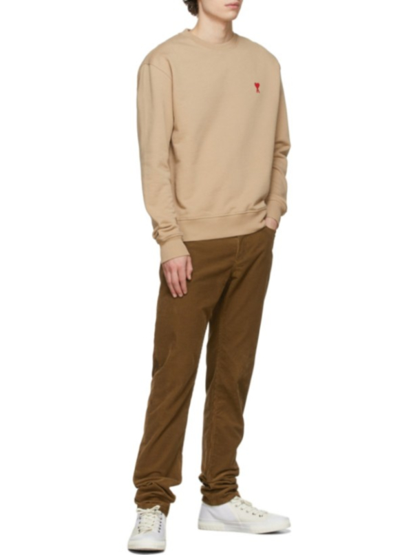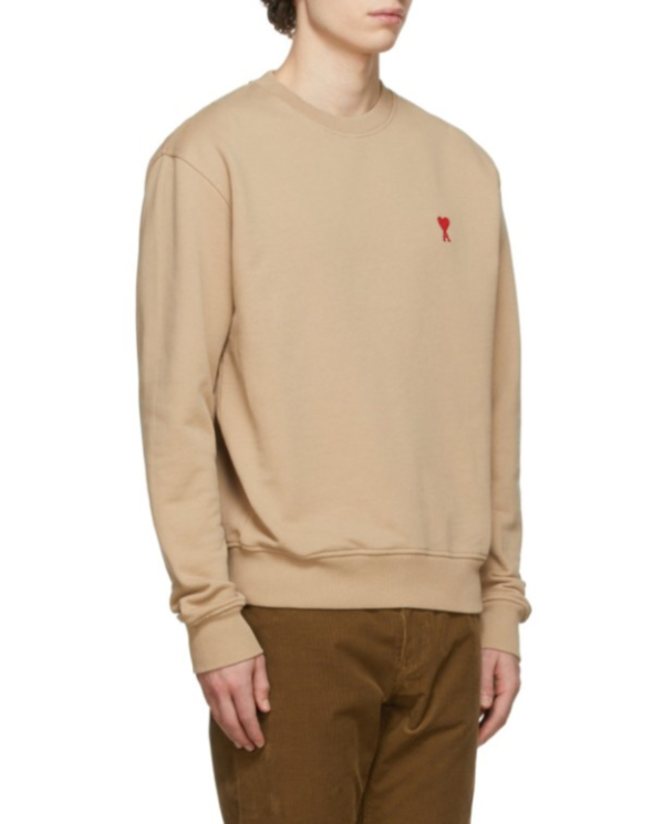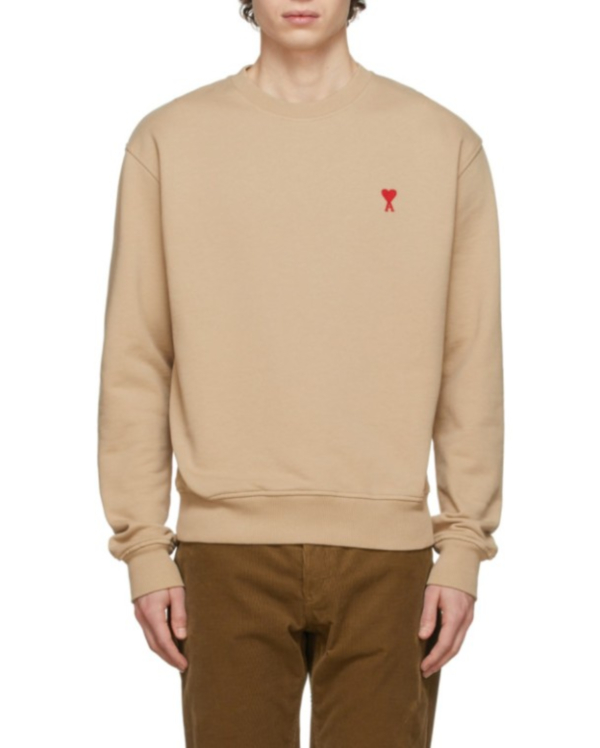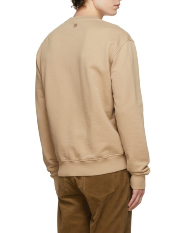 Long sleeve organic cotton French terry sweatshirt in beige. Rib knit crewneck collar, cuffs, and hem.