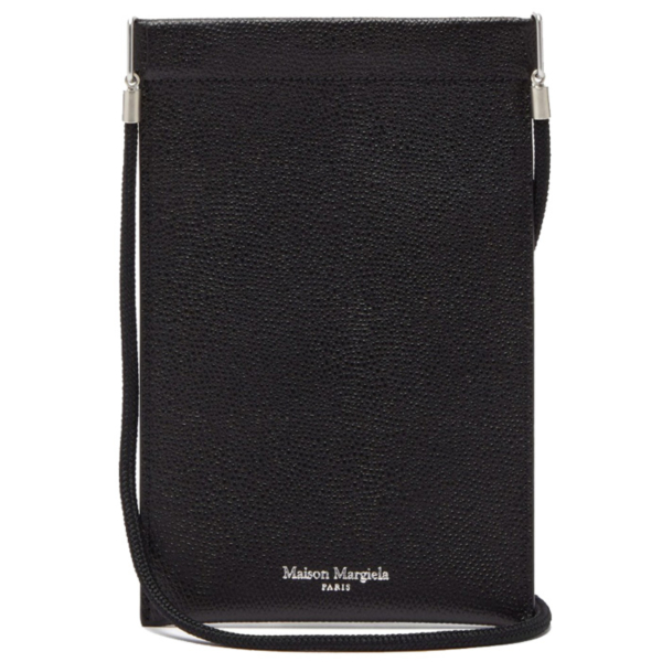 Logo-print grained-leather neck pouch