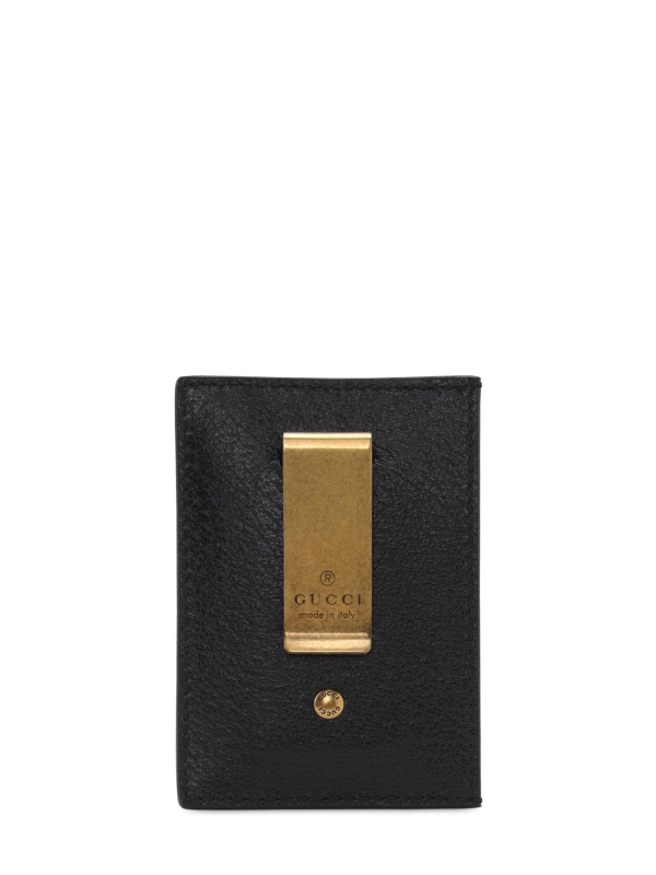 LOGO LEATHER MONEY CLIP CARD HOLDER