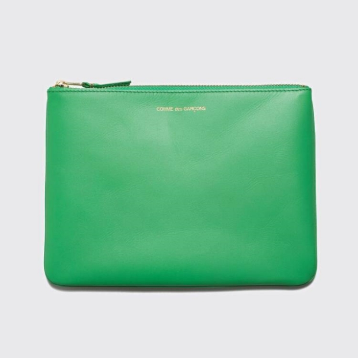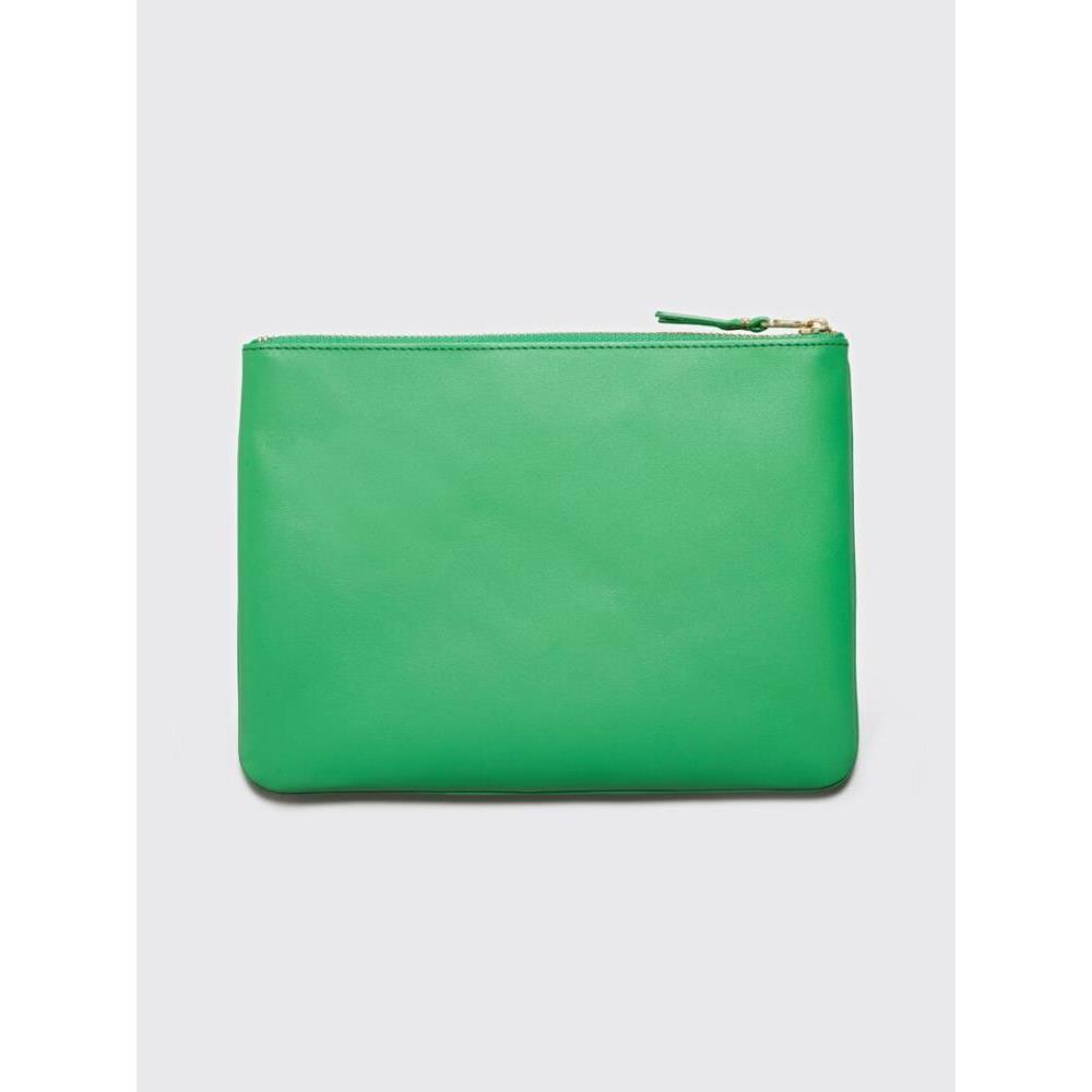 Wallet from Comme des Garcons Wallet. Zip opening with textile trims on one side. Leather pull tab. Contrasting logo embossed on one side.