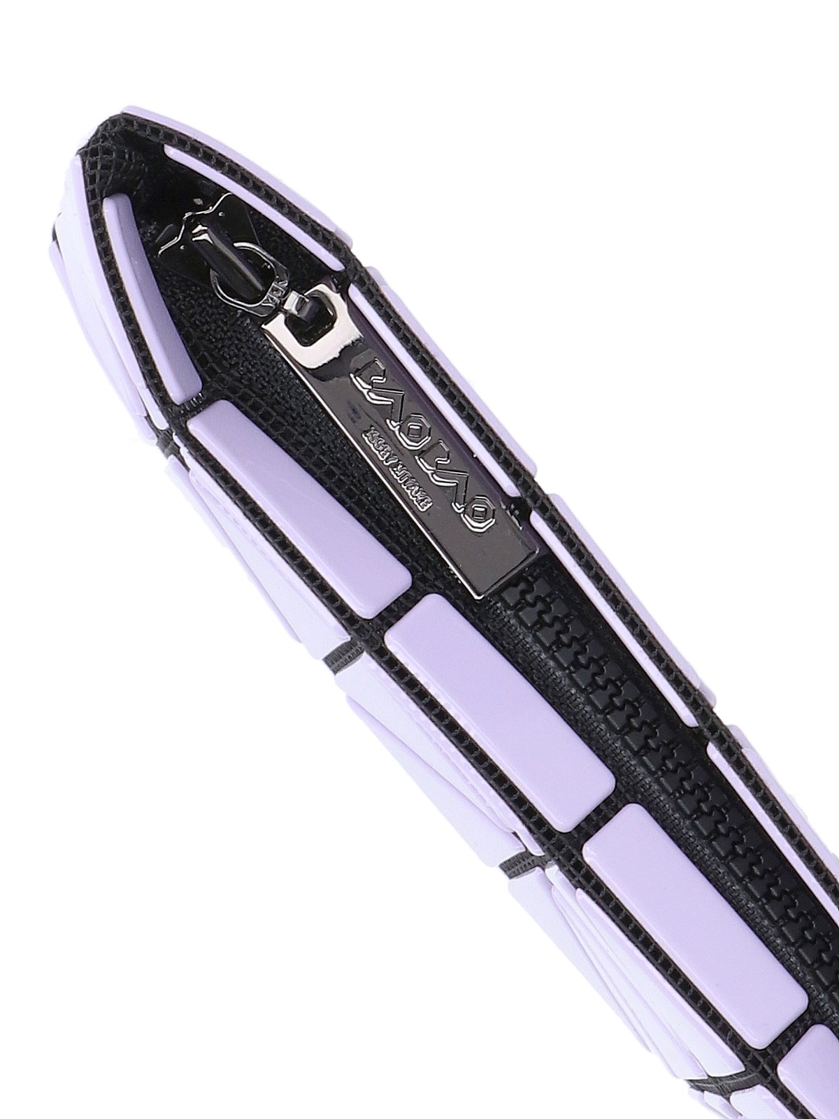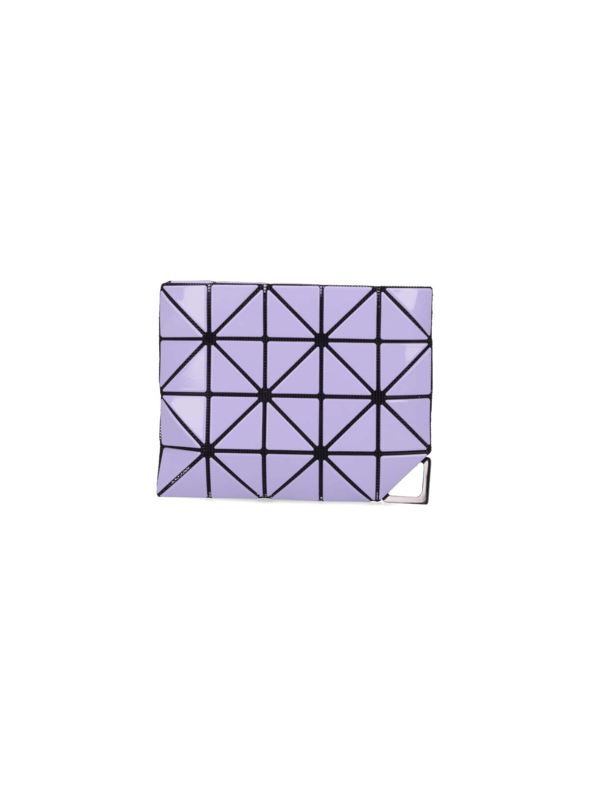Bao Bao geometric pouch, in purple fabric, lilac shade, foldable design, zip fastening, lined interior, corner with metal detail.
