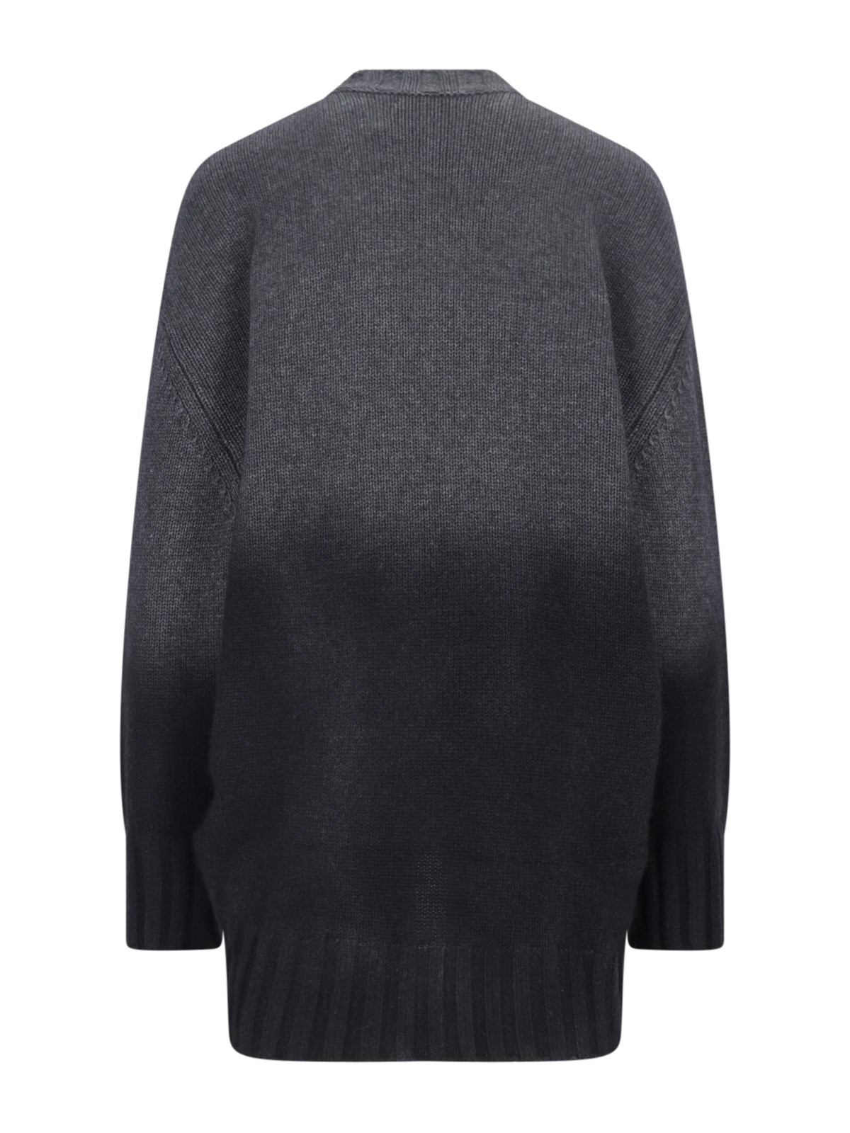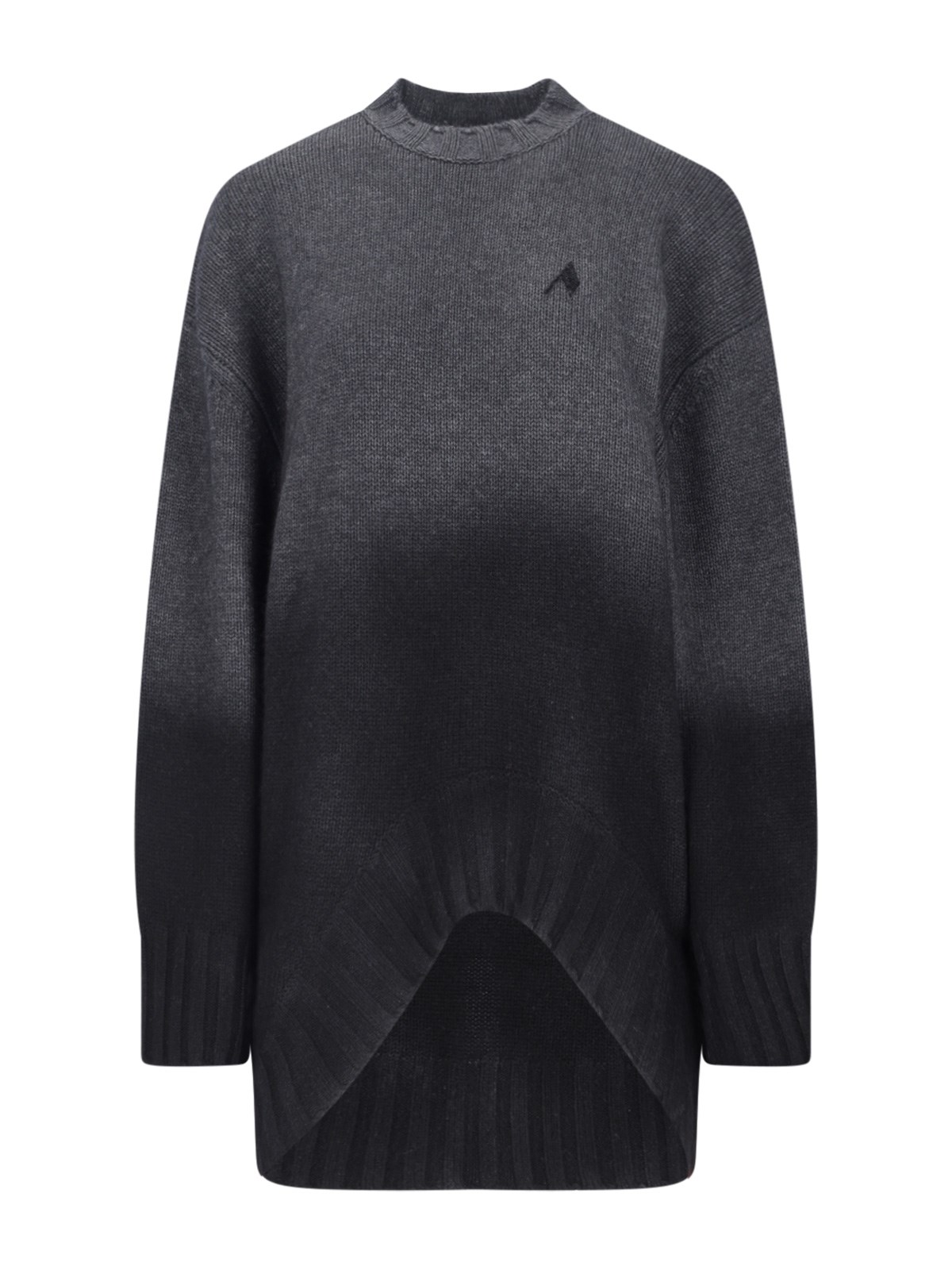 The Attico oversized round-neck jumper, in gradient grey jacquard of merino wool and cashmere, black logo intarsia on chest, ribbed trim, longer hem on the back.