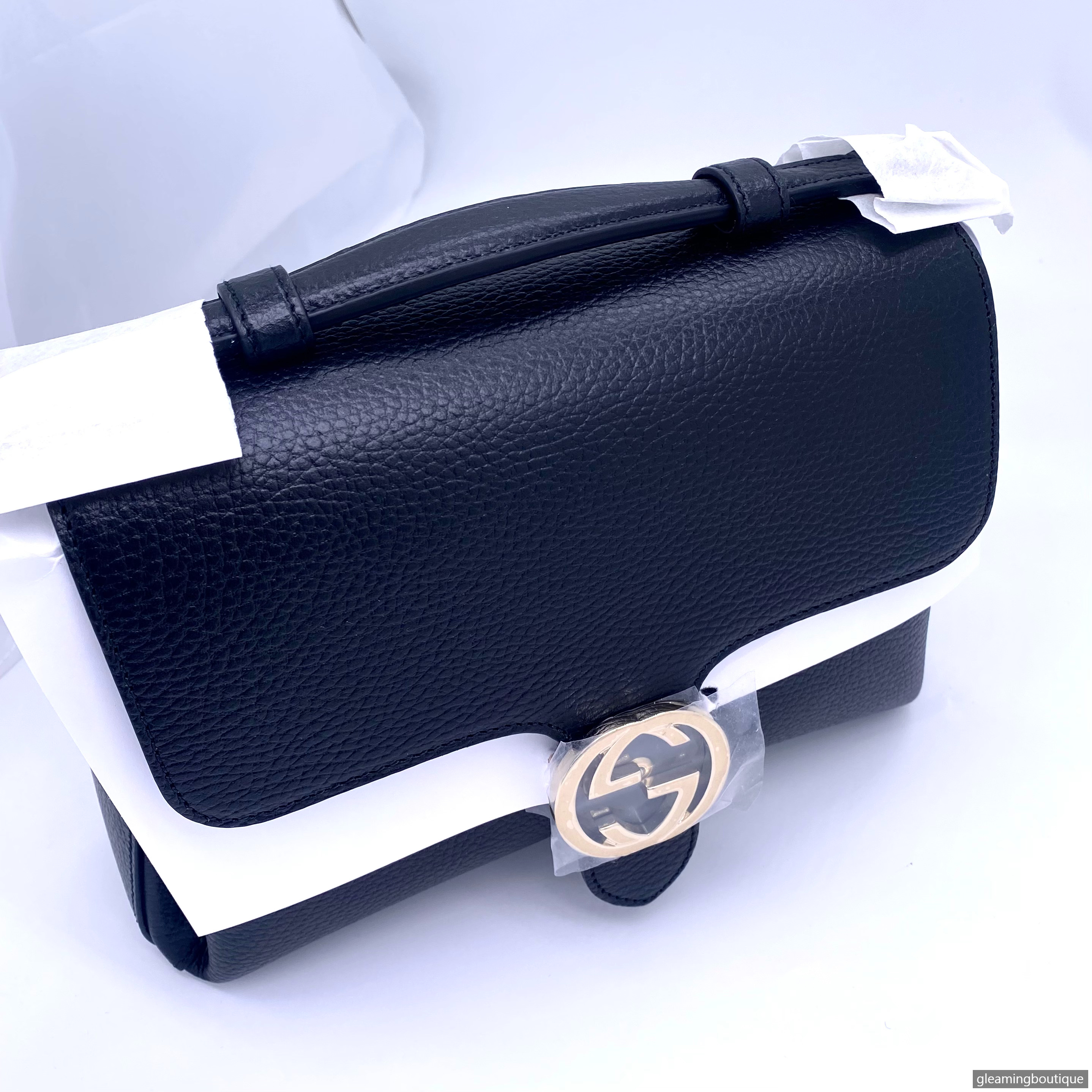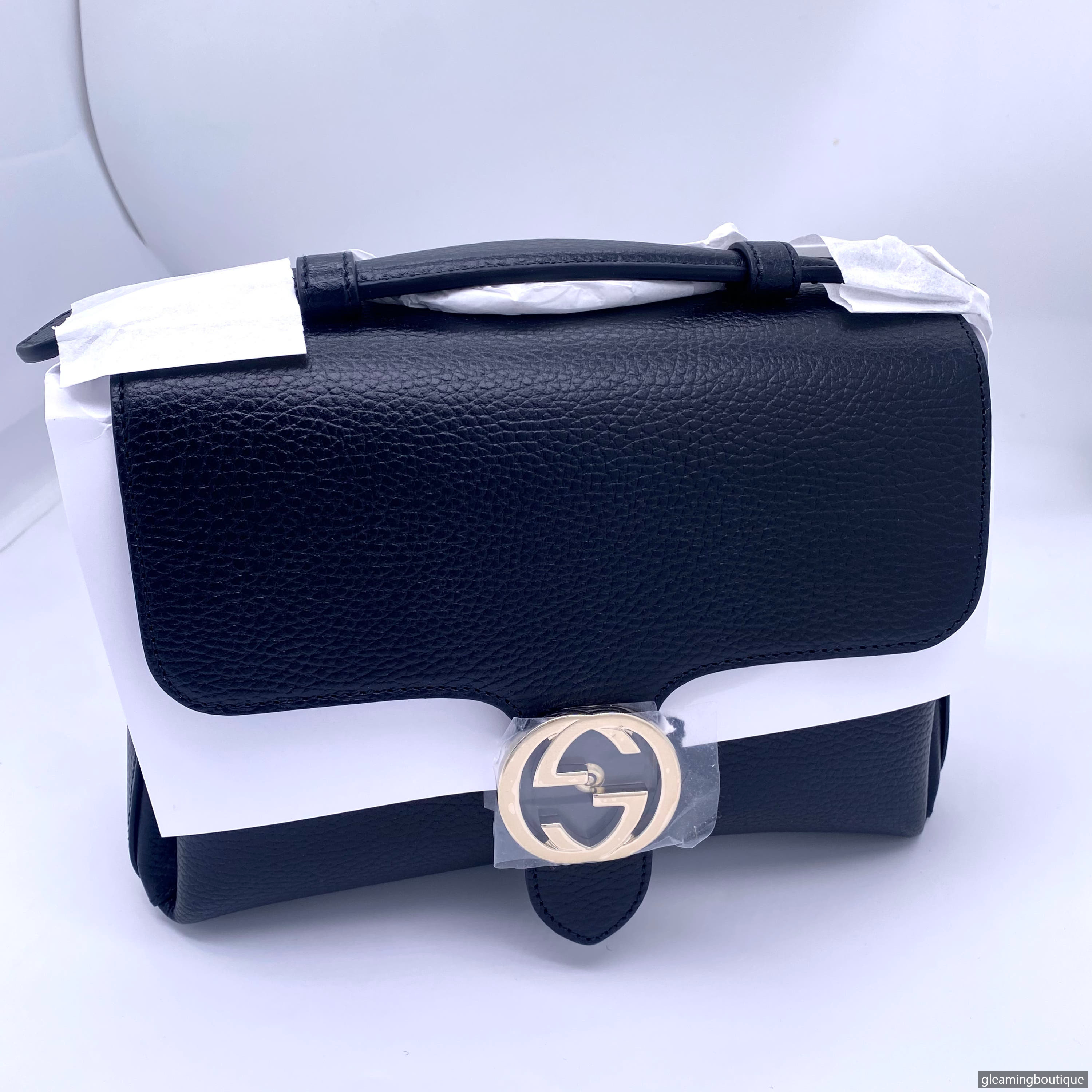Gucci GG Interlocking Top Handle Chain Shoulder Bag Black
