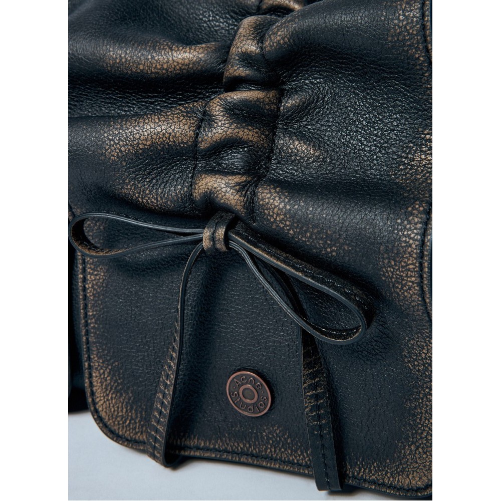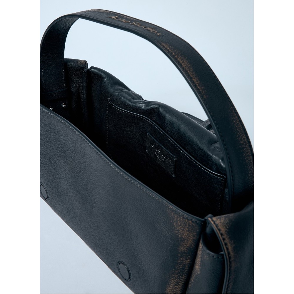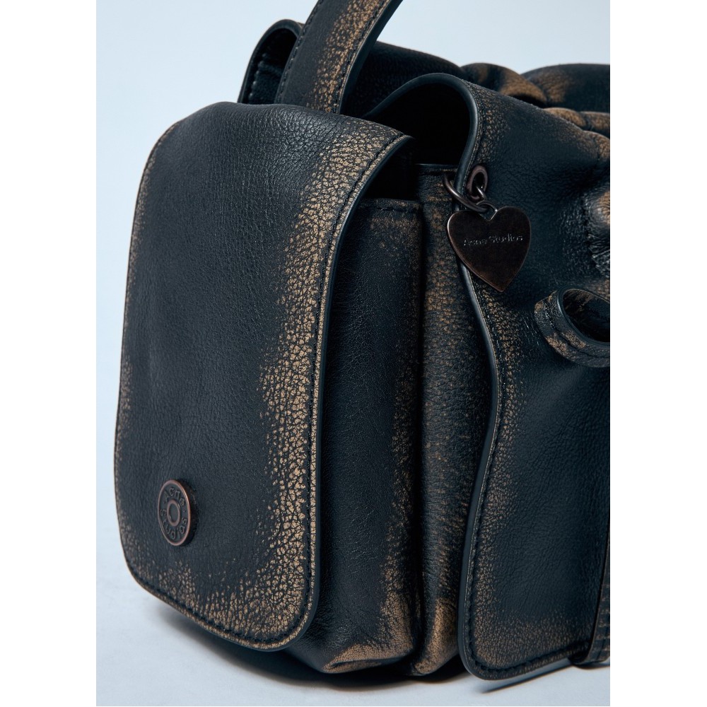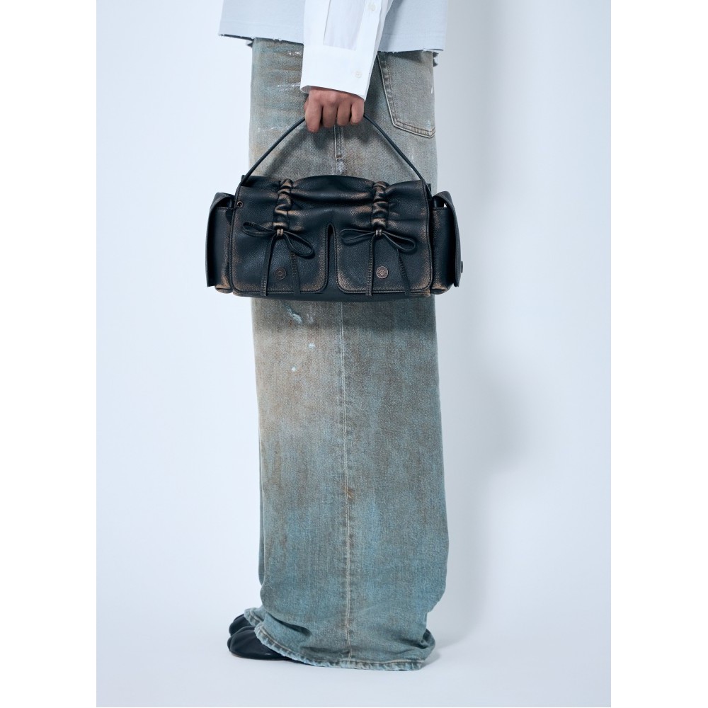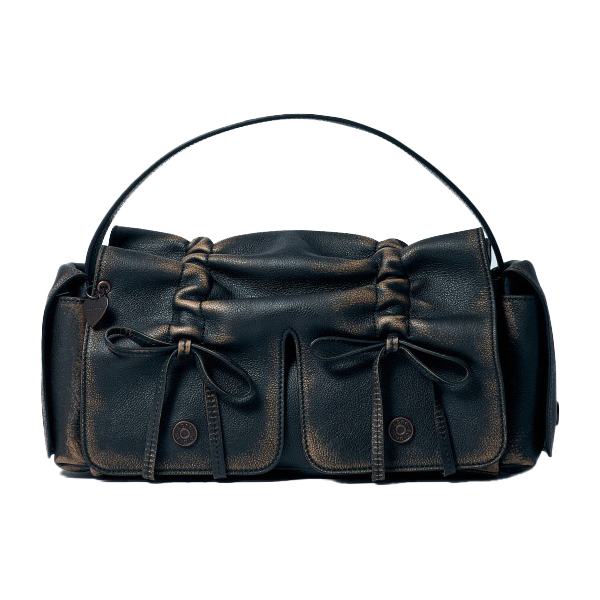 Multi-pocket shoulder bag in vintage-finish leather.