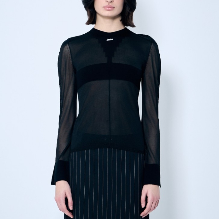 Open-knit sweater with front logo motif.