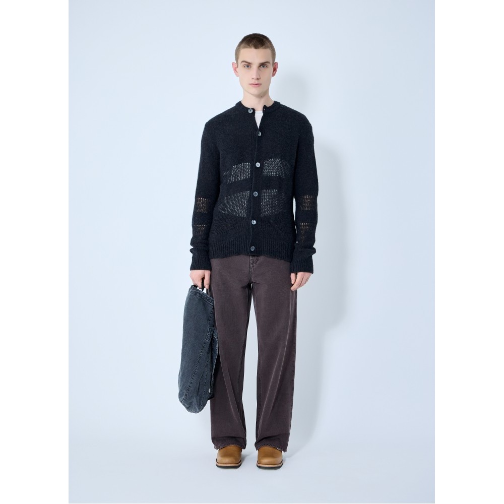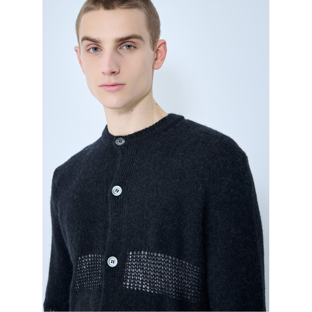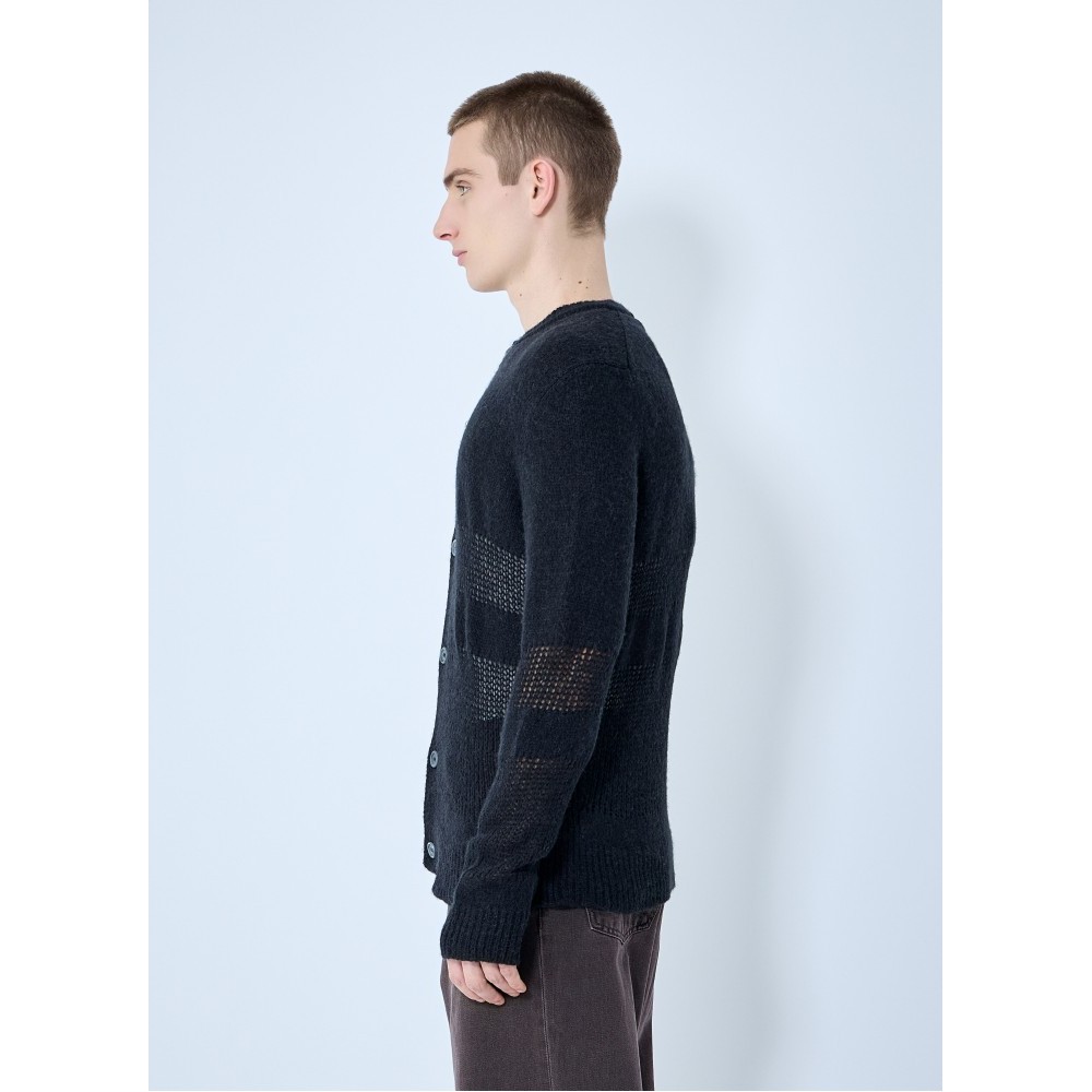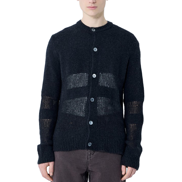 Contrast knit cardigan.