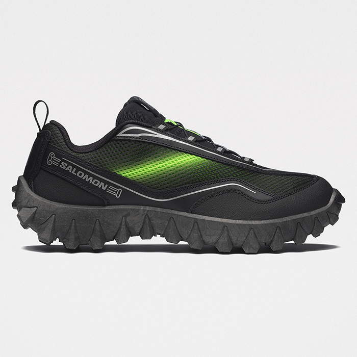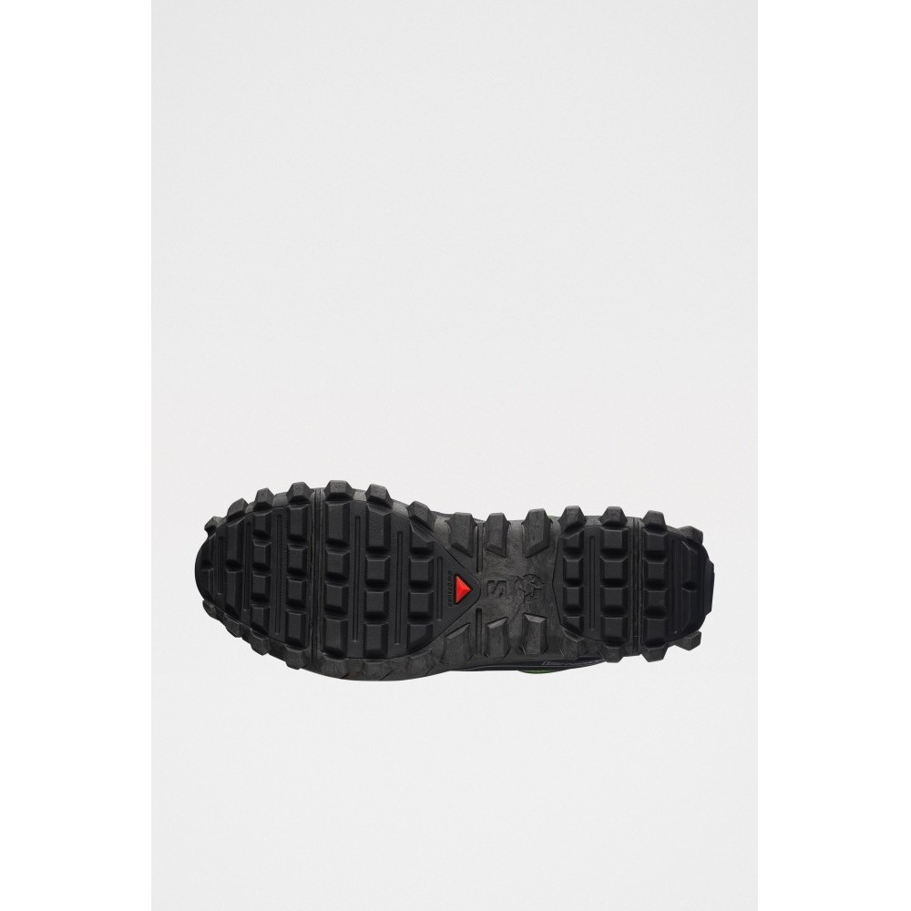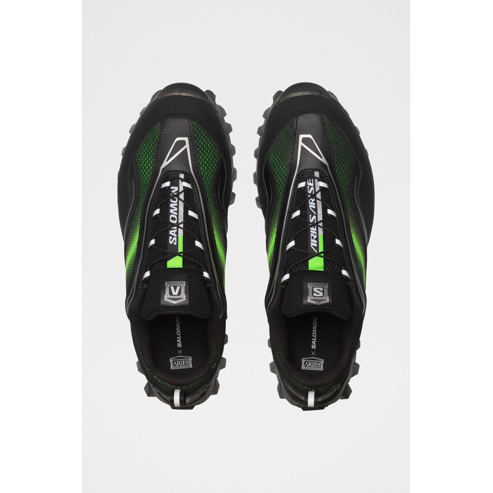 Sneakers from Salomon in collaboration with Aries. Made with a mesh upper and pull tab lacing. Features a mesh-lined interior, an All Terrain Contagrip outsole, and an infiniFOAM midsole for cushioning. Co-branded details on the tongue, side, and heel. Sole unit made from recyclable materials.