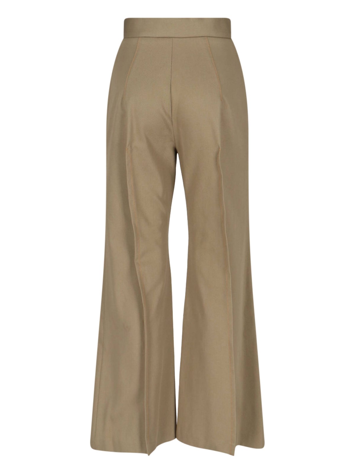 Vivienne Westwood palazzo pants with pleats, brown cotton, high waist, button and zip hook closure, front pleats, two side pockets, wide leg.