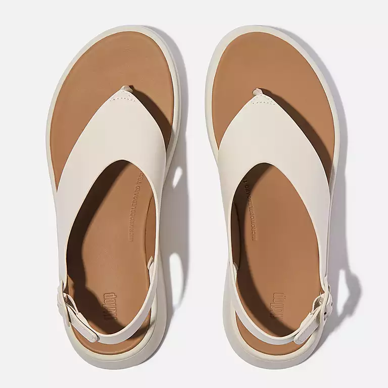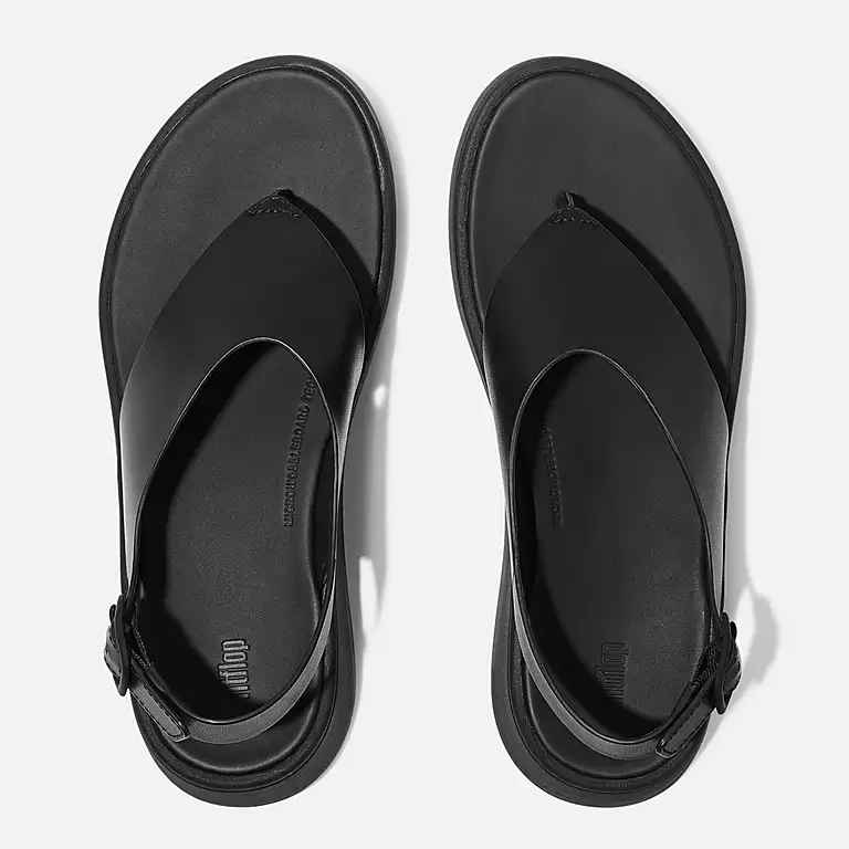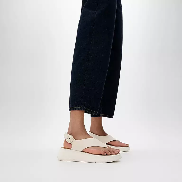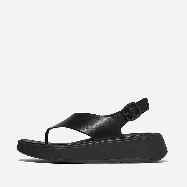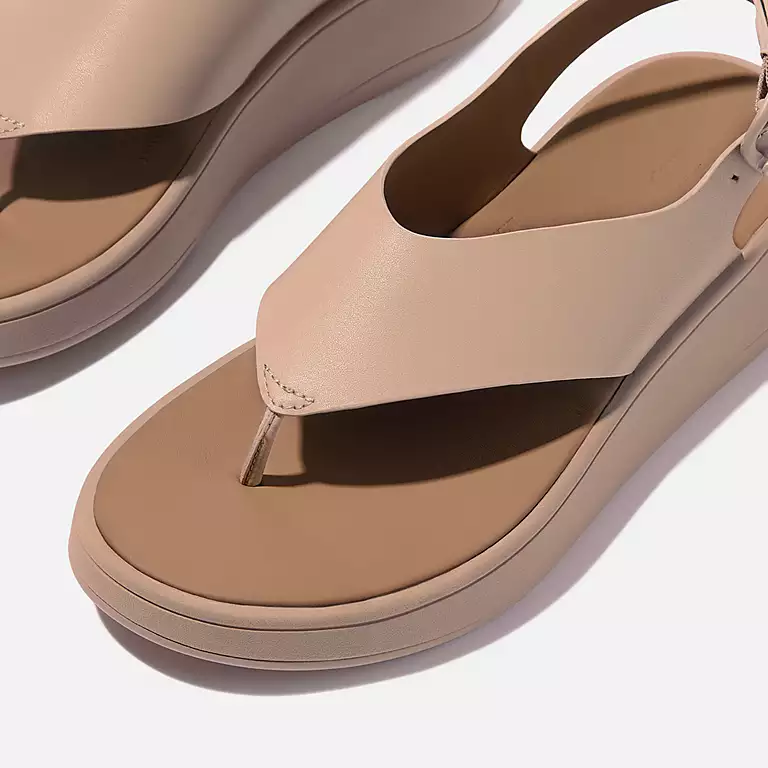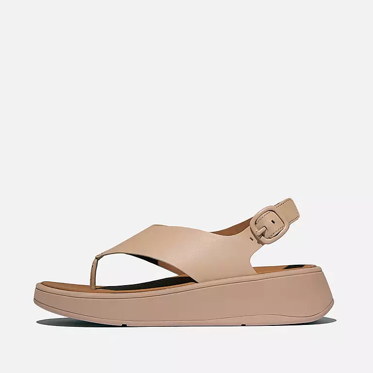 F-MODE Leather Flatform Back-Strap Toe-Post Sandals