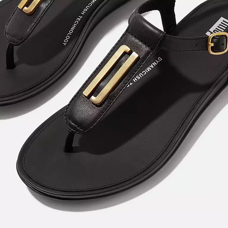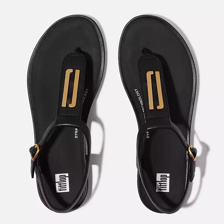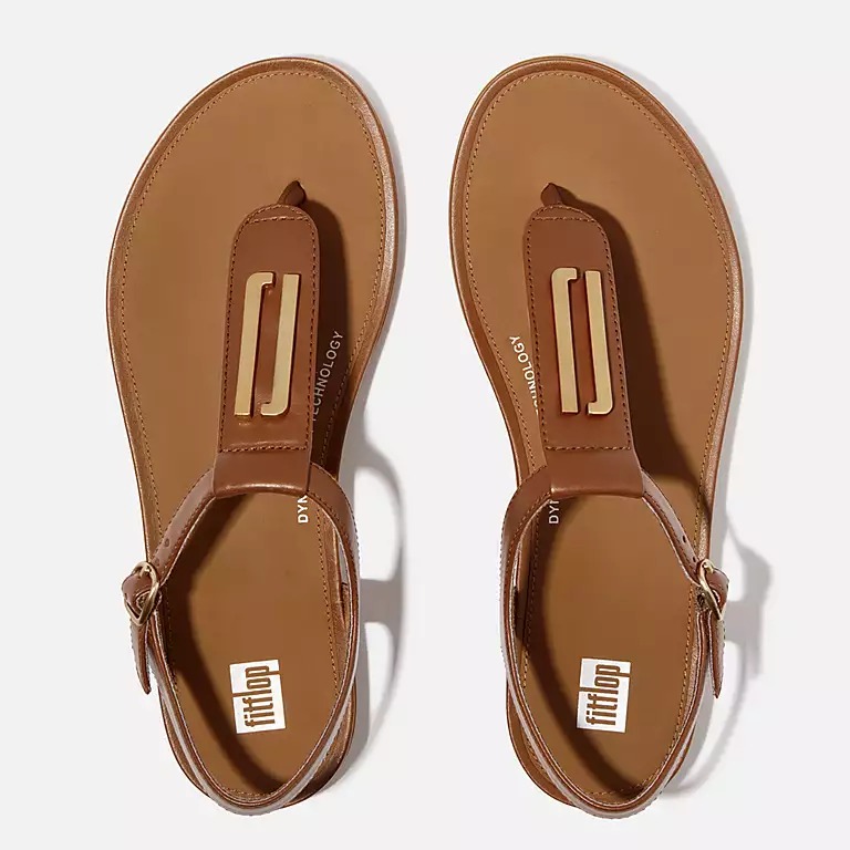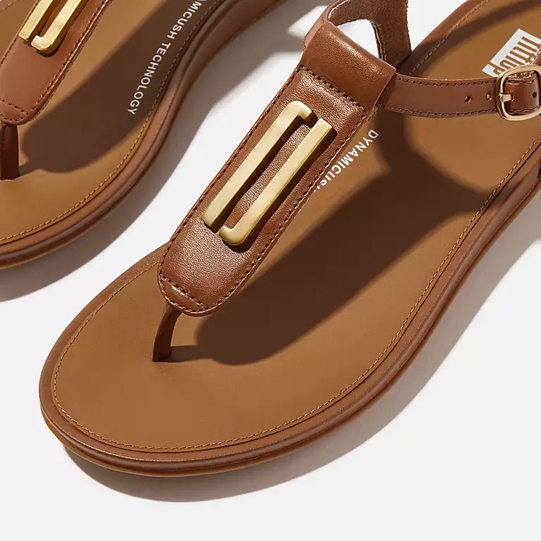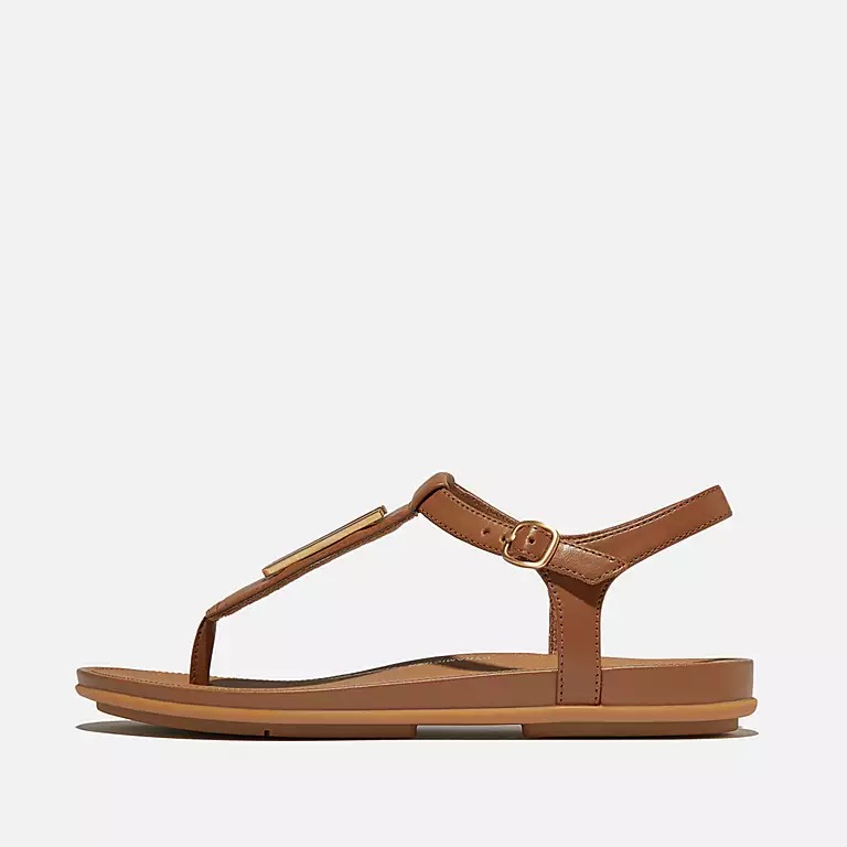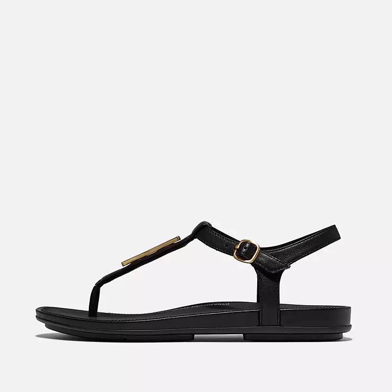 GRACIE Gold-Trim Leather T-Bar Sandals