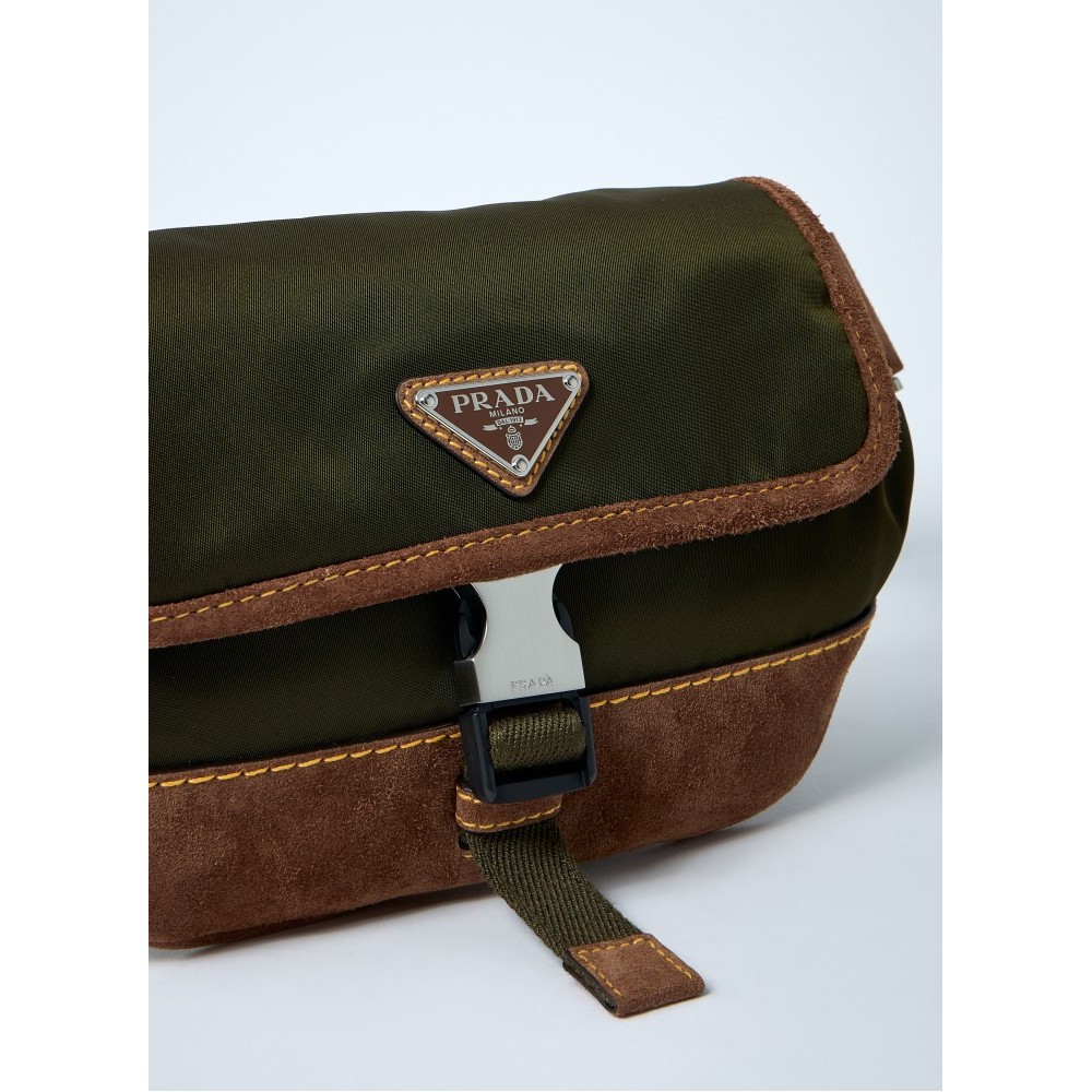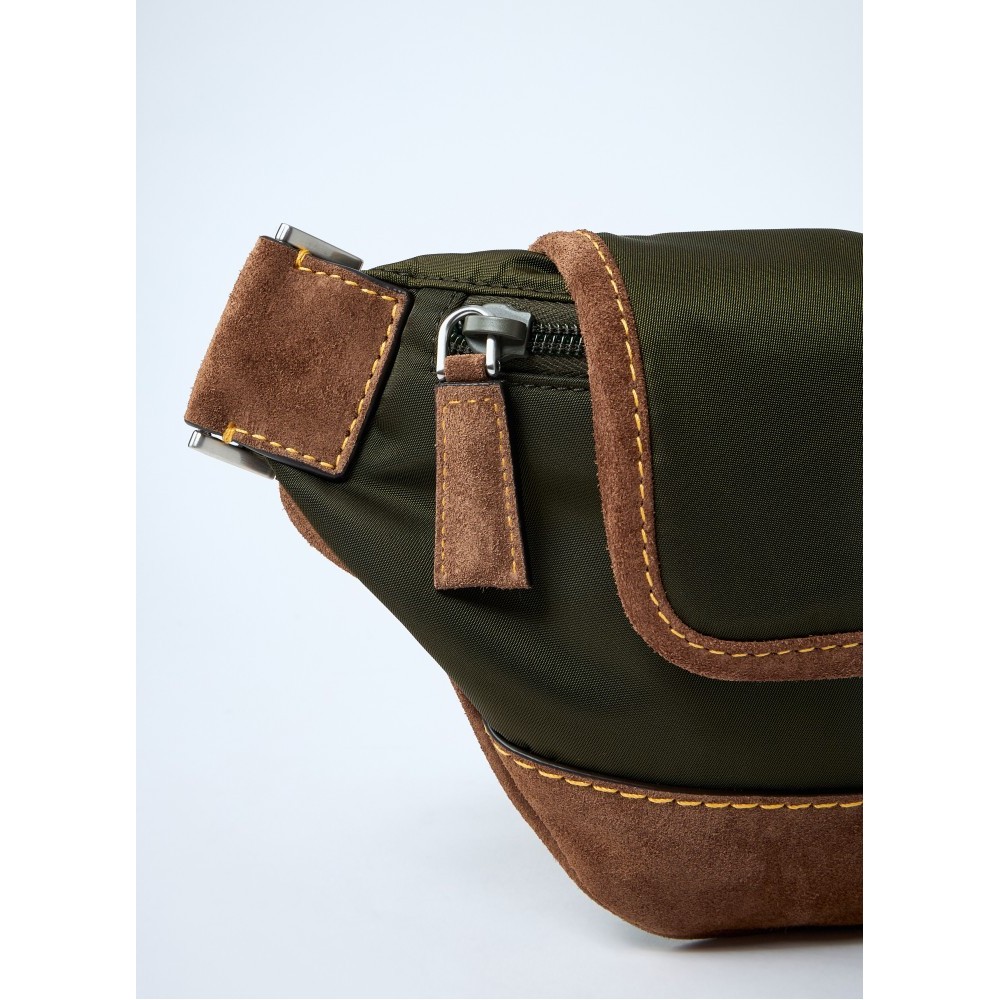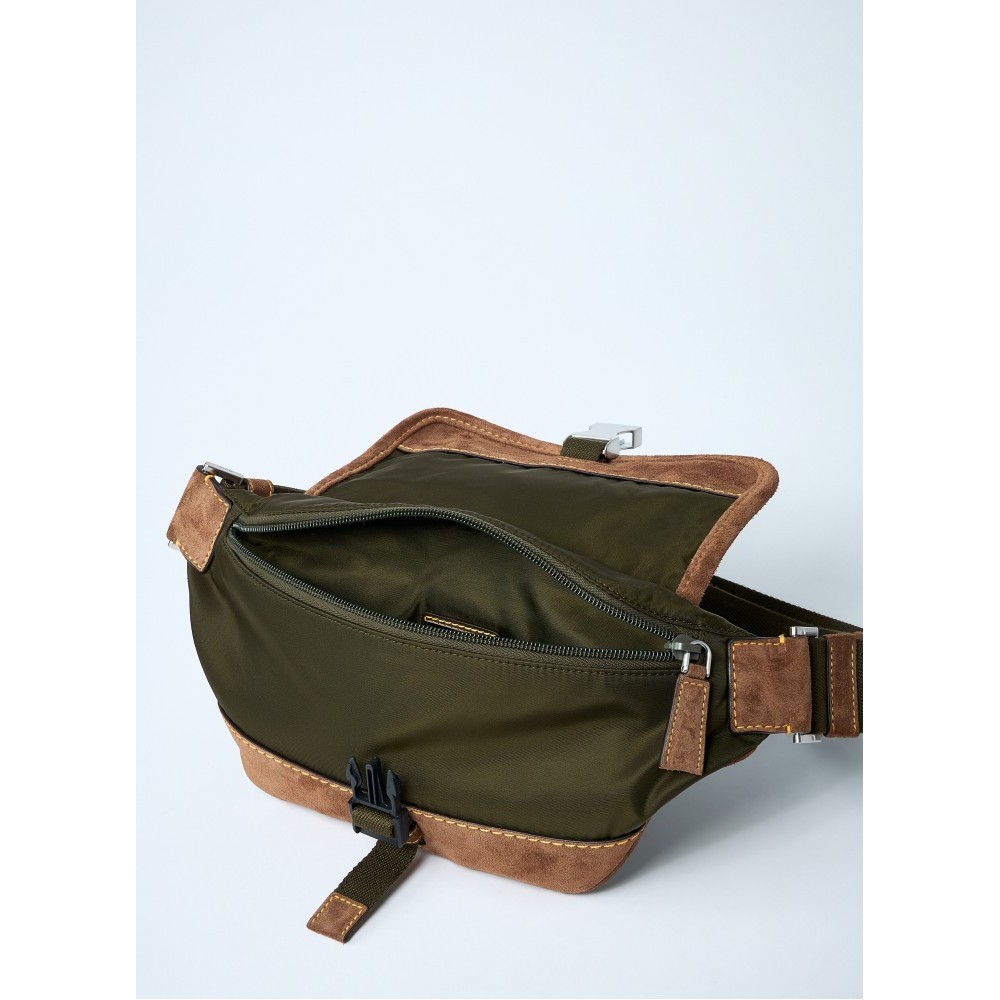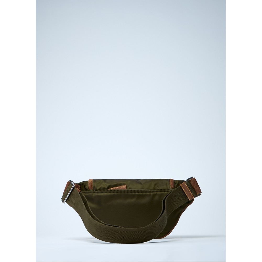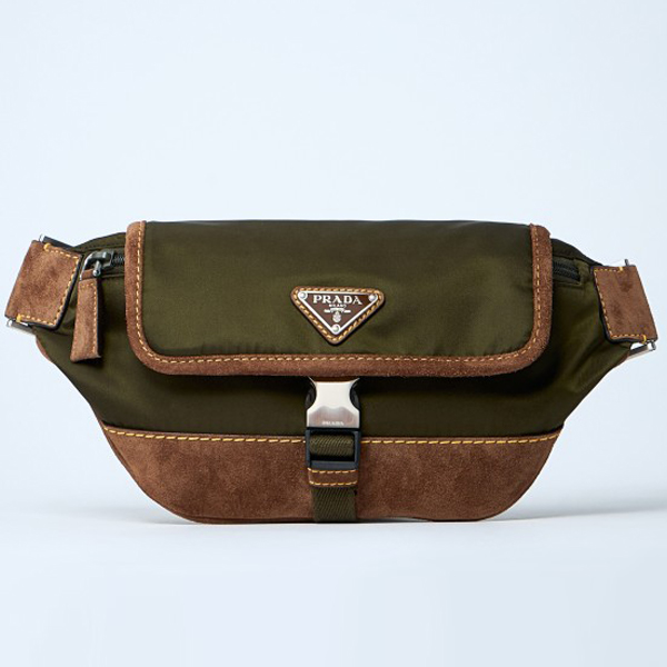 Re-Nylon belt bags with leather trims.