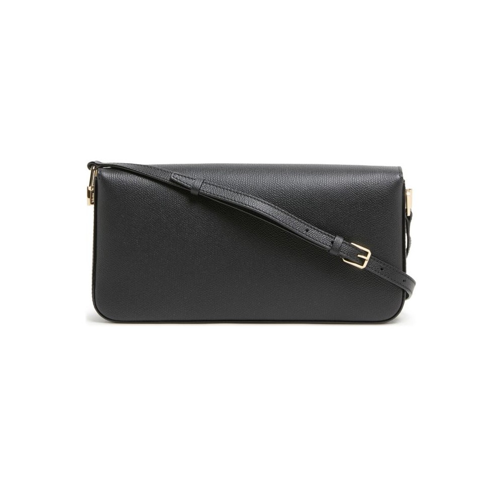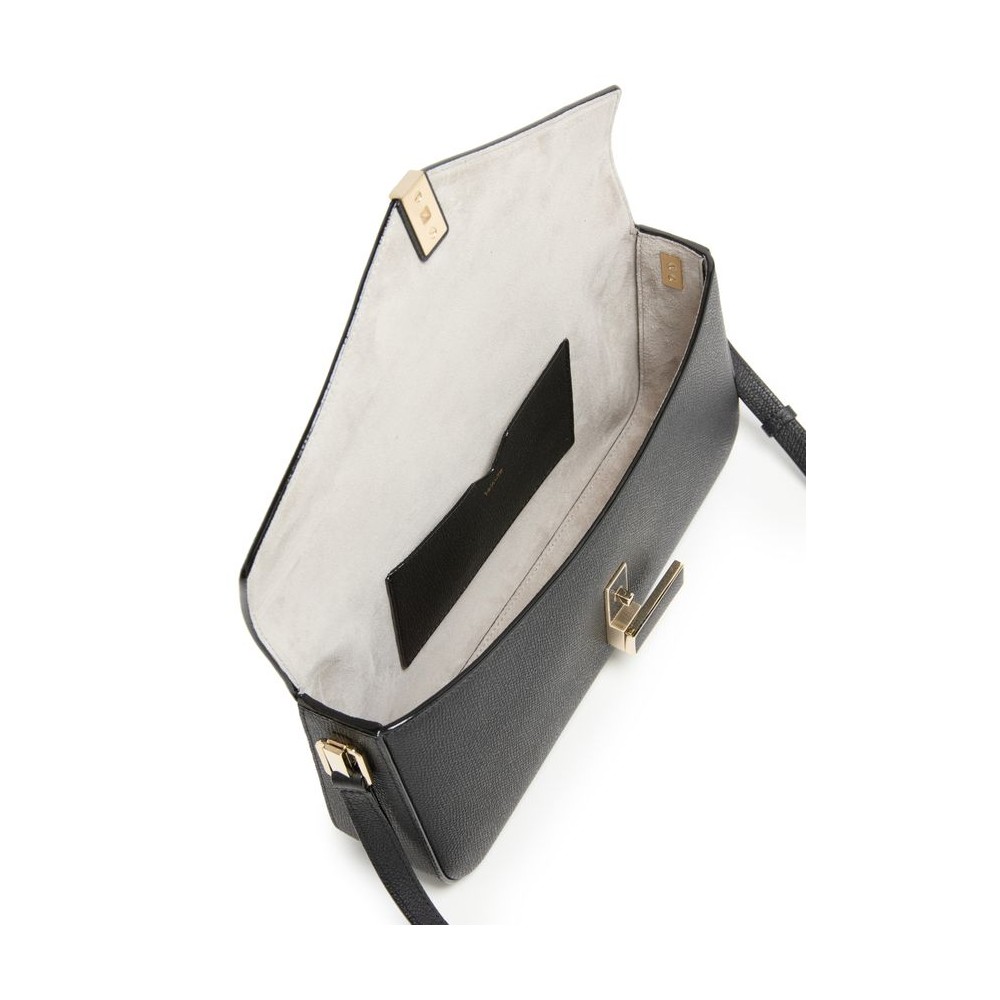 Description : single compartment, twist lock closure, visible topstitching, printed logo, mini bag, gold finish, worn crossbody, worn on the shoulder, adjustable strap, interior patch pockets.