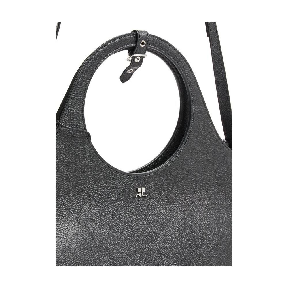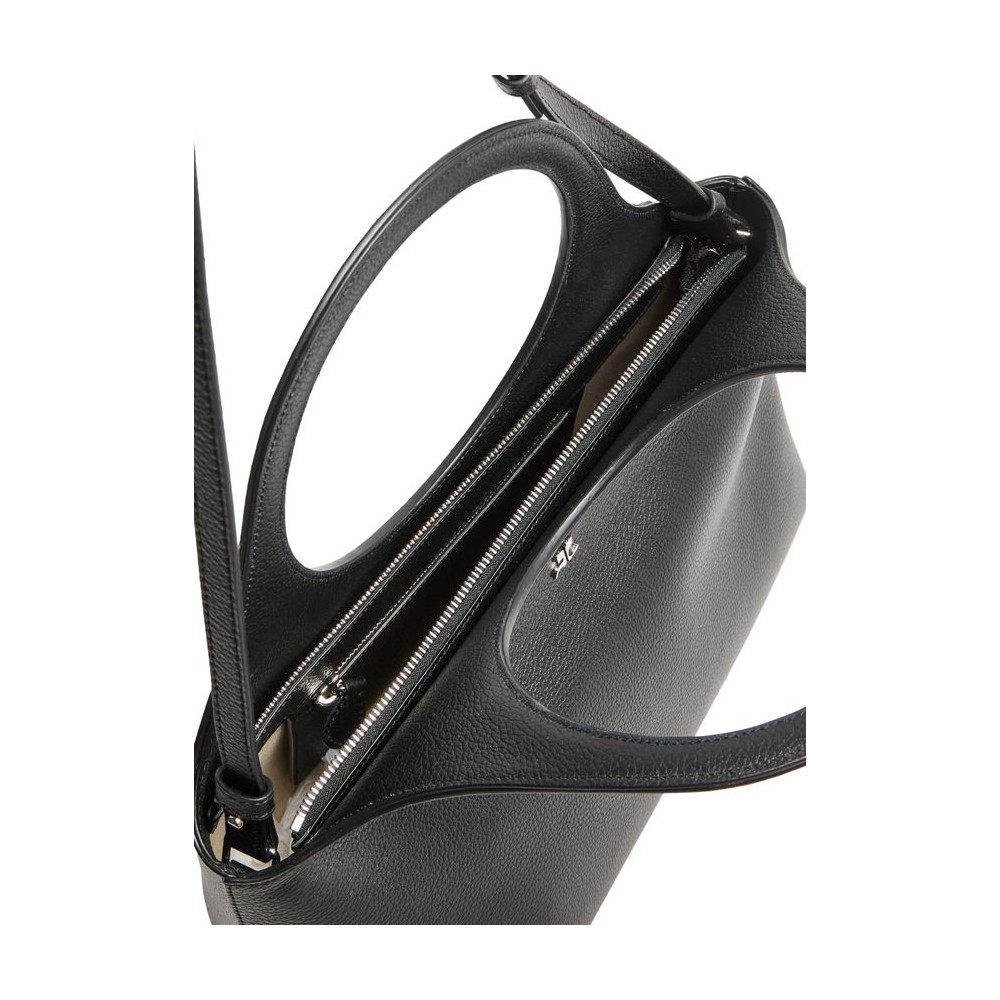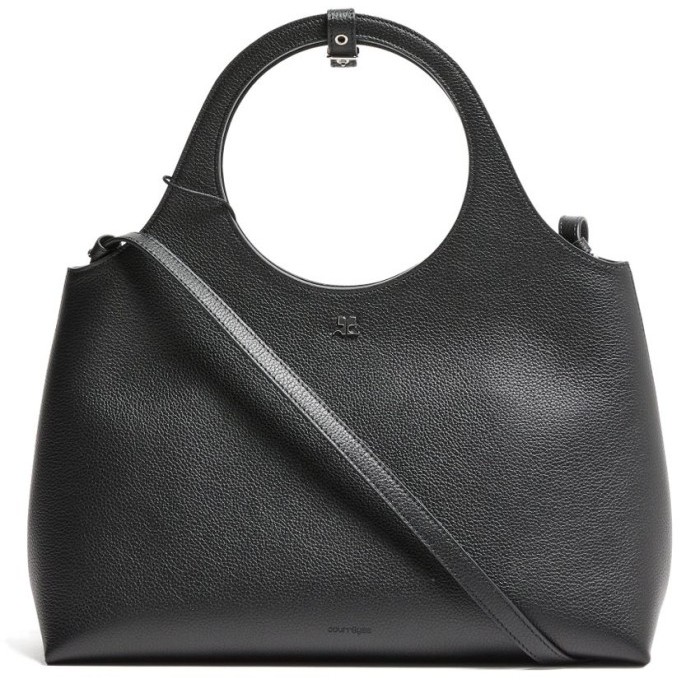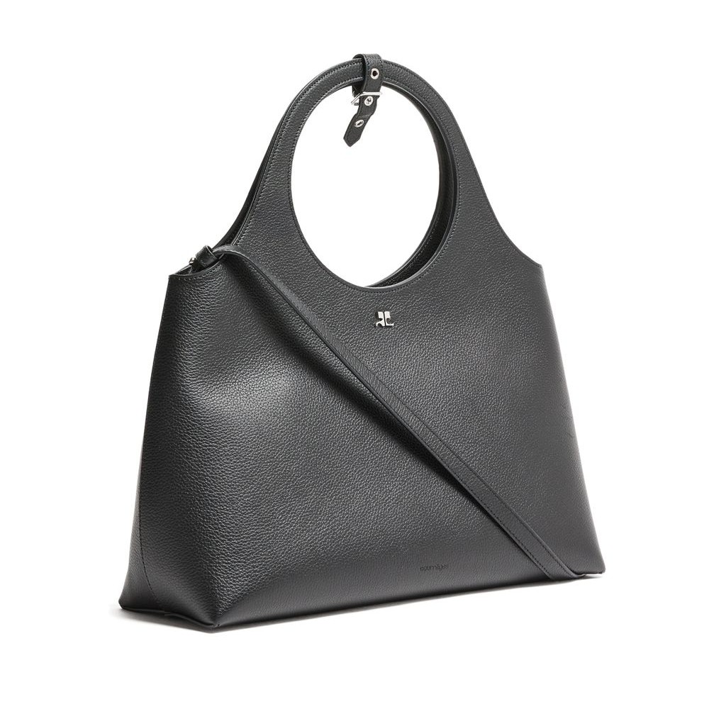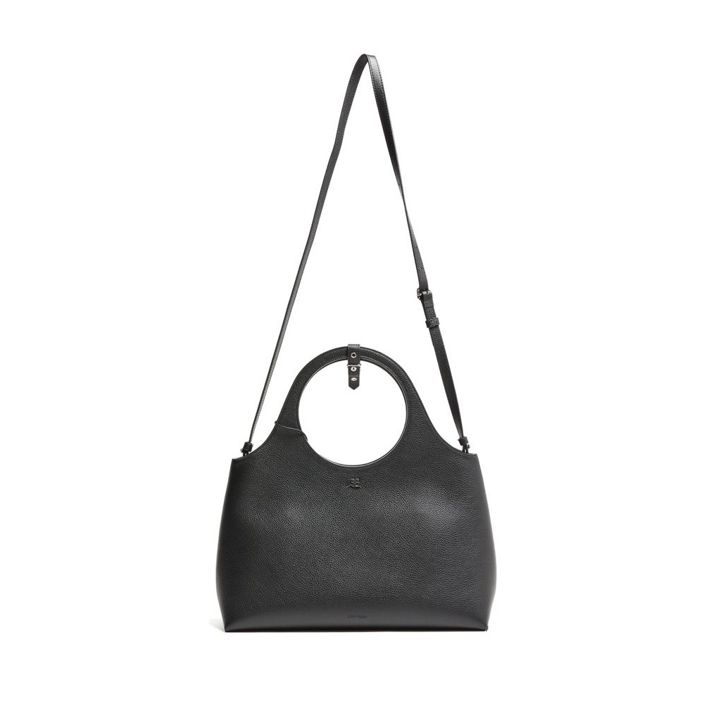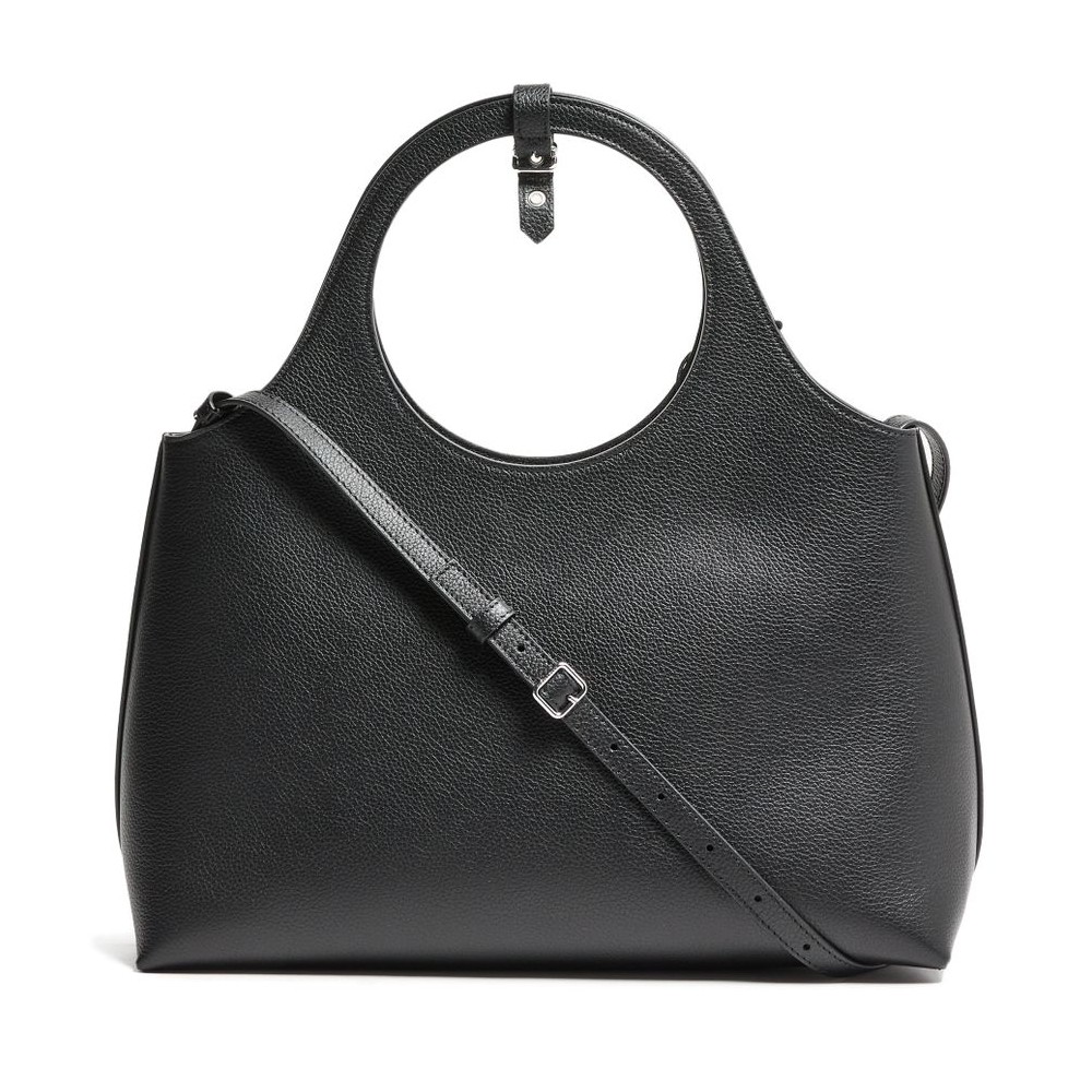 Description : Shopper / tote bag, crossbody bag, shoulder bag, single handle, double handles, leather handle, thin strap, adjustable strap, front logo, grained leather.