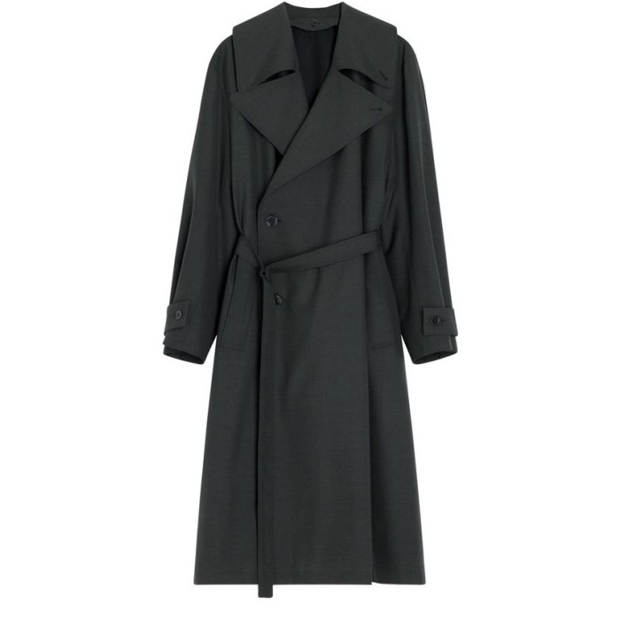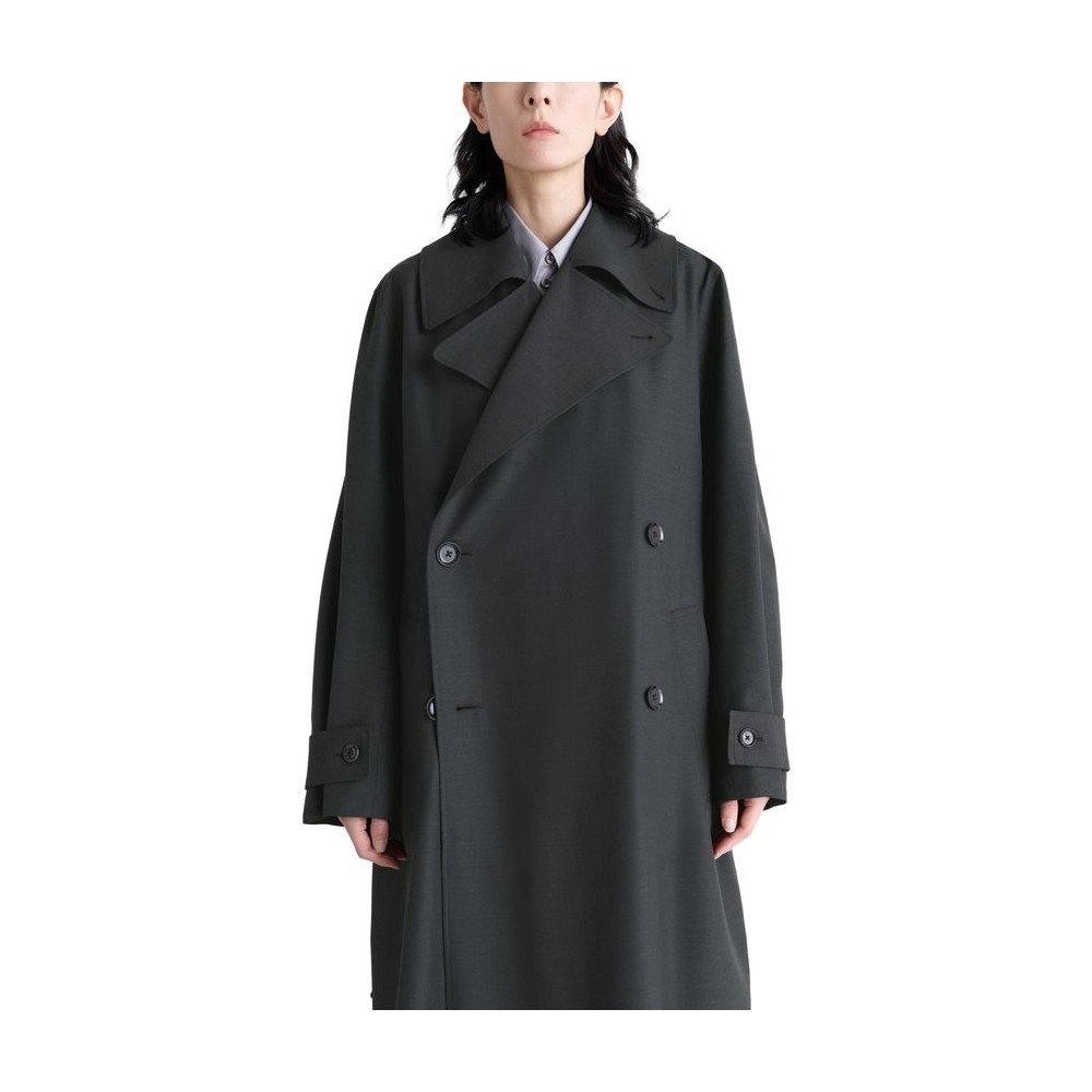 Oversized, collar, flap pockets, side pockets, long-sleeved, double-breasted, button fastening, bow fastening, notched collar