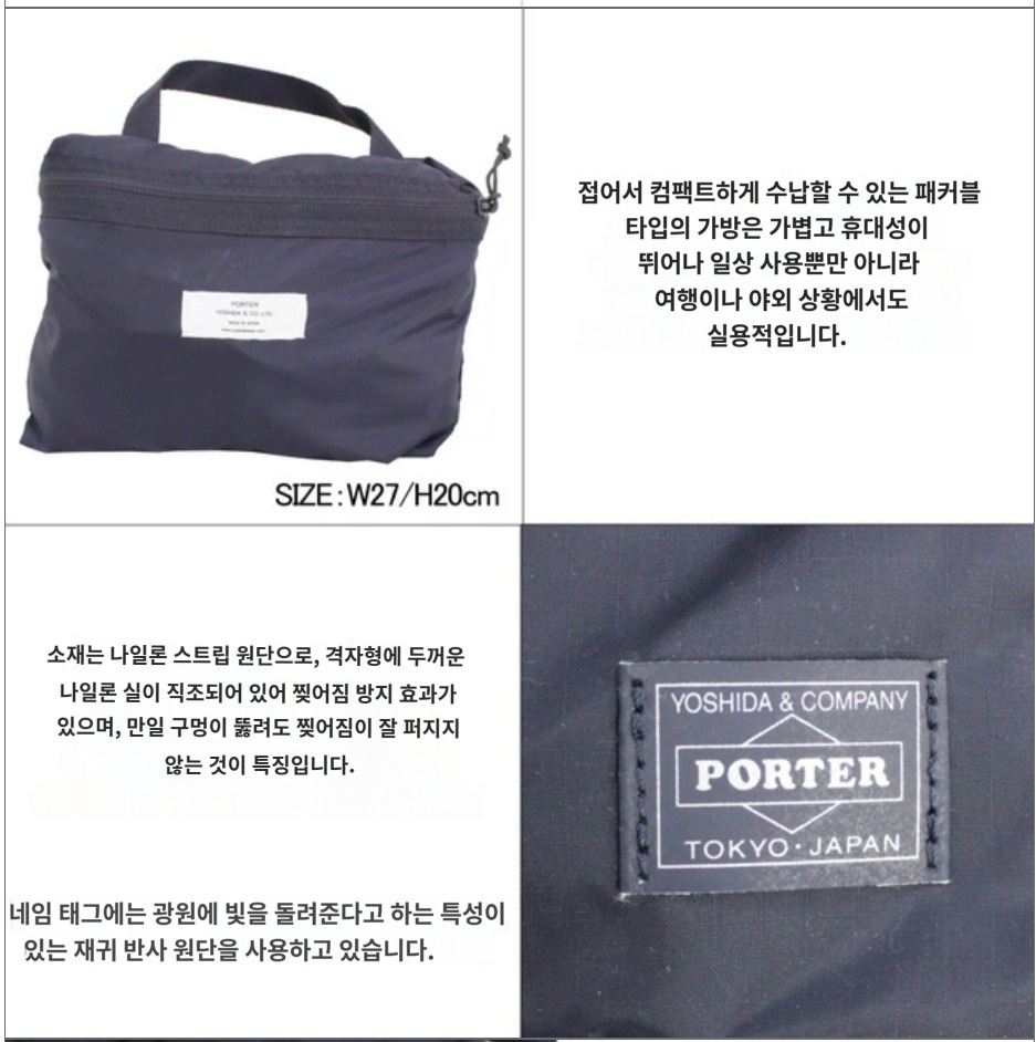 ´õÇà °¡¹æ S ÆÐÄ¿ºí ŸÀÔÀÇ °¡¹æÀº º¸½ºÅÏ °¡¹æÀ̳ª Å䯮 ¹é, ¹è³¶ µîÀÌ ÀαⰡ ÀÖÁö¸¸,ÀÌ ½Ã¸®Áî´Â ¹Ð¸®Å͸® ¾ÆÀÌÅÛ¿¡ ƯÈÇÏ°í ¾î·¹ÀÎÁö¸¦ Ãß°¡ÇÑ ±¸Á¶·Î ¿Ï¼ºµÇ°í ÀÖ½À´Ï´Ù. Á¢¾î¼ ÄÄÆÑÆ®ÇÏ°Ô ¼ö³³ÇÒ ¼ö ÀÖ¾î, °æ·®À¸·Î È޴뼺ÀÌ ¶Ù¾î³ª±â ¶§¹®¿¡ ÀÏ»ó »ç¿ë »Ó¸¸ÀÌ ¾Æ´Ï¶ó ¿©ÇàÀ̳ª ¾Æ¿ôµµ¾î ¾Àµî¿¡¼µµ ½Ç¿ëÀûÀÔ´Ï´Ù. ¼ÒÀç´Â ³«ÇÏ»ê Å©·Î½º¶ó°íµµ ºÒ¸®´Â ³ªÀÏ·Ð ¸³ ½ºÅé õÀ¸·Î, °ÝÀÚ ¸ð¾çÀ¸·Î ±½Àº ³ªÀÏ·Ð ½ÇÀÌ Â¥¿©Á® Àֱ⠶§¹®¿¡ Âõ¾î ¹æÁö È¿°ú°¡ ÀÖ¾î, ¸¸ÀÏ ±¸¸ÛÀÌ À־ Âõ¾îÁüÀÌ ±× ÀÌ»ó ÆÛÁö±â ¾î·Æ±â ¶§¹®¿¡ ±ºÀåǰÀÇ ÆÇÃʳª ¾Æ¿ôµµ¾î ¿þ¾î µî¿¡µµ ÀÌ¿ëµÇ°í ÀÖ½À´Ï´Ù. PORTERÀÇ ³×ÀÓ Å±׿¡´Â ±¤¿ø¿¡ ºûÀ» µ¹·ÁÁִ Ư¼ºÀÌ ÀÖ´Â Àç±Í ¹Ý»ç ¿ø´ÜÀ» »ç¿ëÇϰí ÀÖ½À´Ï´Ù. |