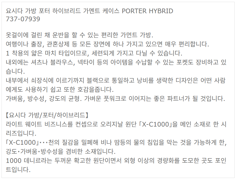 ¿ä½Ã´Ù Æ÷ÅÍ Made In Japan Hybrid Garment bag ´õ½ºÆ®¹é °¡¹æ 737-07939