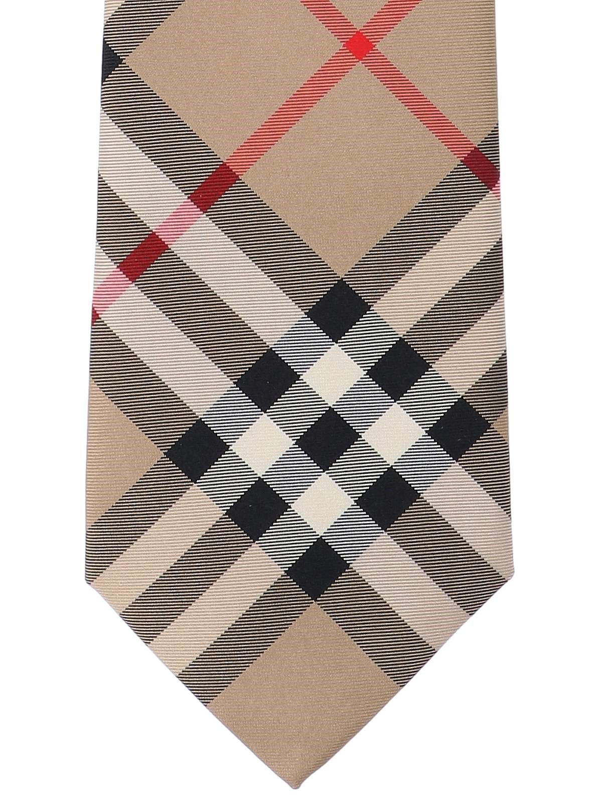 Burberry "Vintage Check" beige silk tie with iconic all-over red and black detail, adjustable.