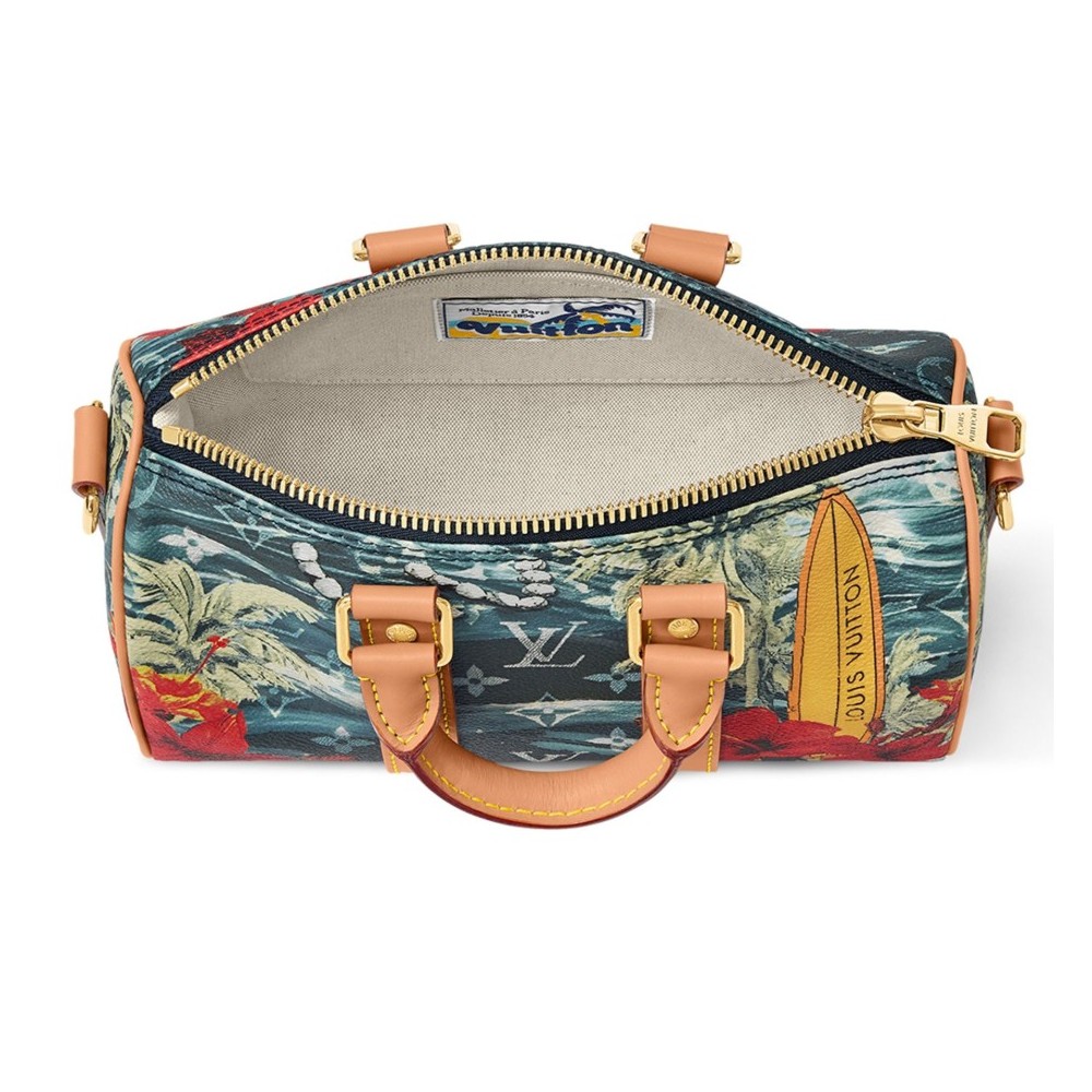 Material : Monogram Surfin" coated canvas, trimming: cowhide leather, lining: fabric, golden metal